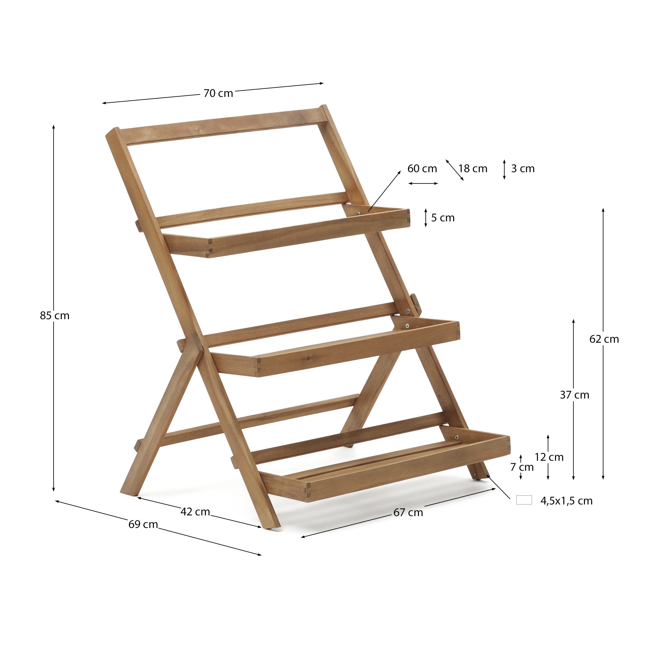 Funktionalität Holzregal Victor garantiert einen bequemen Nutzung des Außenraums und gewährleistet gleichzeitig Zuverlässigkeit und Haltbarkeit. Idealerweise als Ort für die Aufbewahrung von Pflanzen, Büchern oder dekorativen Accessoires geeignet, wodurch Eleganz und Charakter zu jedem Garten, Terrassen oder Balkon verleiht werden.