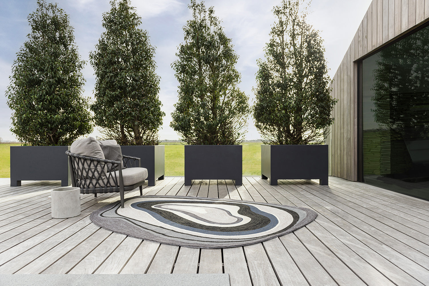 Dank seines ausdrucksstarken Musters passt Aura auch hervorragend in Innenräume – er kann ein originelles Accessoire für das Wohnzimmer, die Küche oder das Badezimmer sein und verleiht ihnen Frische und modernen Charakter. Es genügt, passende Kissen oder Überzüge für Blumentöpfe auszuwählen, um eine harmonische und stilvolle Gestaltung zu schaffen.