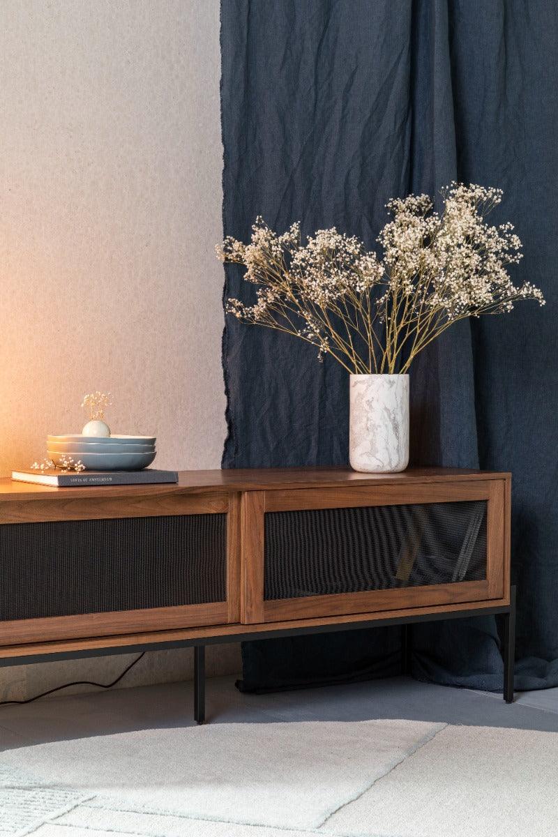 Fajen to stilvoller Vase aus weißem Marmor, der den eleganten Charakter des Innenraums unterstreicht und jeden Blumenstrauß wunderschön zur Geltung bringt. Er wird die ideale Ergänzung für ein skandinavisches Wohnzimmer oder ein Schlafzimmer im Retro-Stil sein. Seine außergewöhnliche Struktur macht ihn auch zu einer eigenständigen Dekoration auf der Fensterbank oder der Holzkommode.