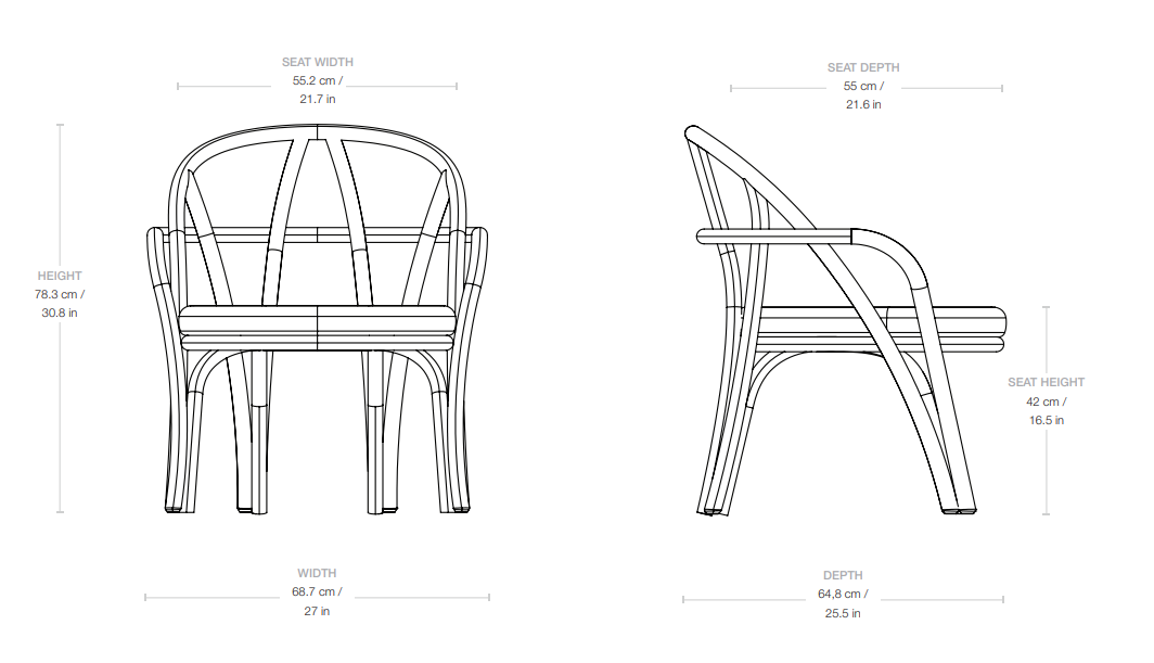 Sessel BISTRA gepolstert mit rattanfarbener Ebenholzgrundlage