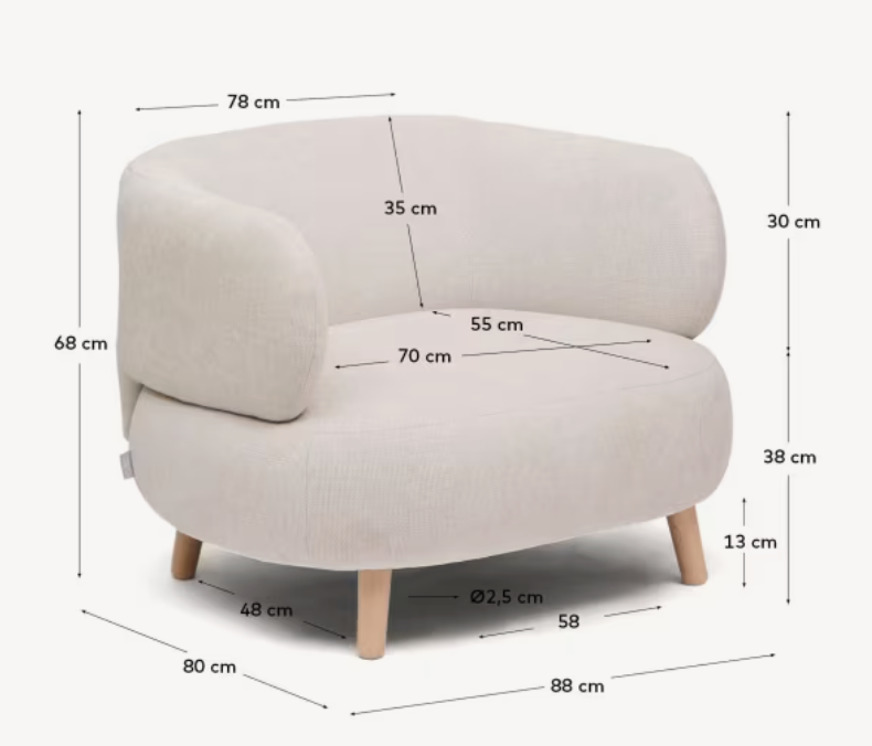 Die Konstruktion des Sessels besteht aus Kiefernholz und E0 MDF-Platten. Die Füllung der Sitzfläche und der Rückenlehne besteht aus Schaumstoff mittlerer Härte, was hohen Benutzerkomfort garantiert. Der Sessel wird lokal in Europa unter Verwendung von Prozessen hergestellt, die die CO₂-Emissionen reduzieren – eine bewusste Wahl für diejenigen, die nicht nur Komfort, sondern auch Umweltverantwortung suchen. Dank durchdachter Konstruktion und perfekter Proportionen ist der gepolsterte Sessel Luisa ein stilvolles Highlight für jedes Wohnzimmer.