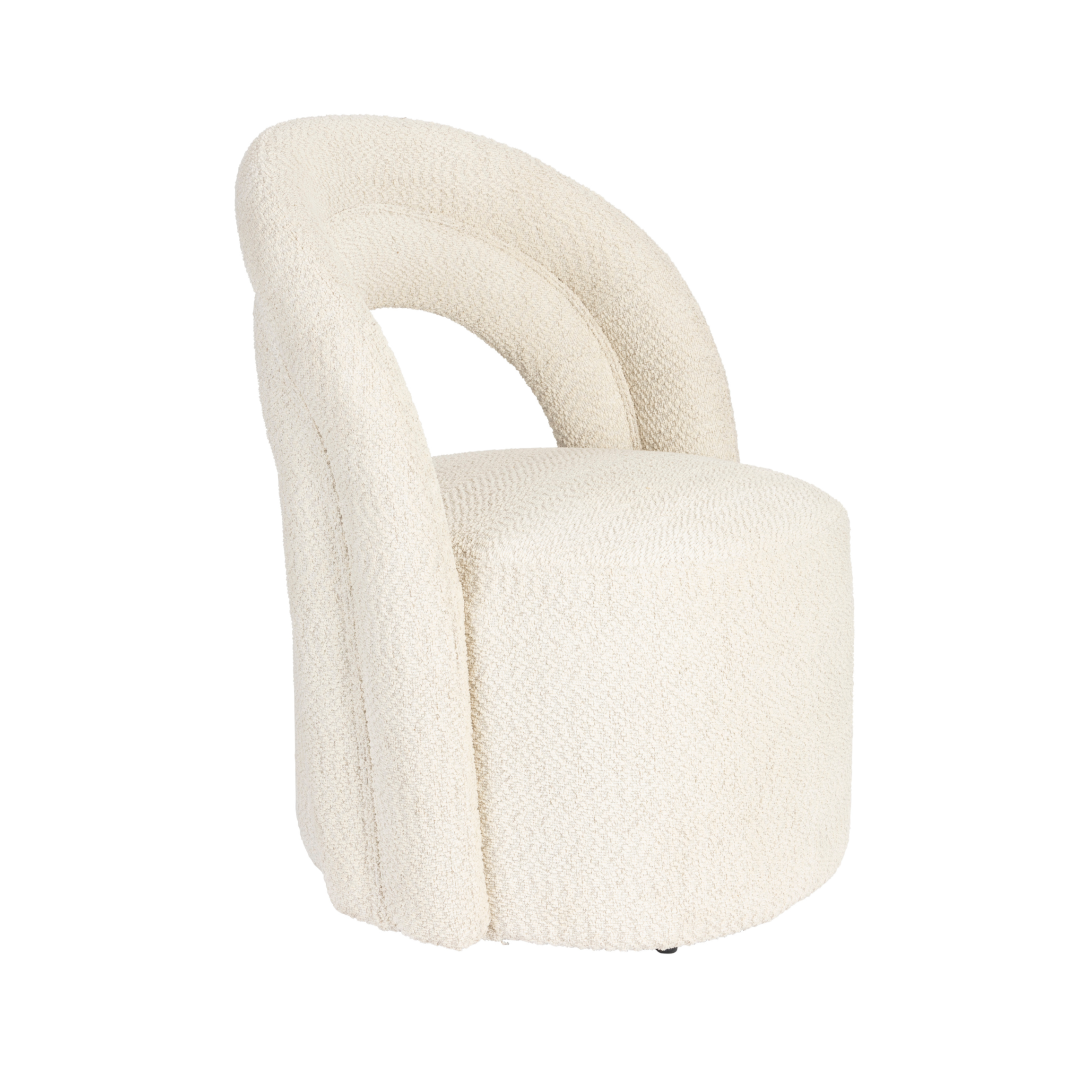 Wenn Sie nach einem Möbelstück suchen, das Ihrem Raum Ausdruck und einen einzigartigen Charakter verleiht, wird Seina genau das Richtige sein. Dieser Designer Sessel begeistert auf den ersten Blick – seine halbrunde Rückenlehne erinnert in ihrer Form an einen Regenbogen, der das abgerundete Sitzkissen umschließt und eine harmonische, stimmige Einheit bildet. Mit weichem Bouclé-Stoff in einem subtilen Beigeton bezogen, lädt das Sitzkissen zum Entspannen ein und bietet gleichzeitig Gemütlichkeit und Eleganz im Retro-Stil.