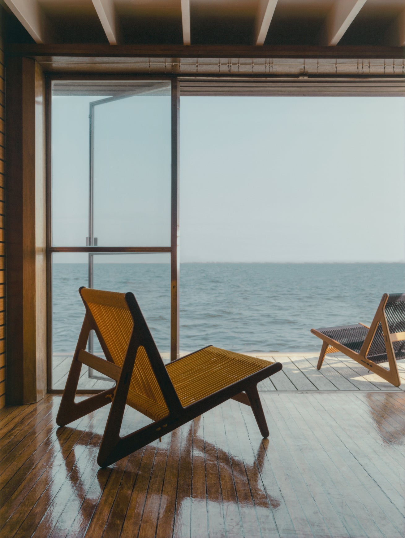 Der Rahmen ist ohne Schrauben gefertigt, was die Handwerkskunst und die Reinheit des Designs unterstreicht. Sitz und Rückenlehne aus hochwertigem, wasser- und UV-beständigem Polyesterseil garantieren Langlebigkeit und Komfort auch unter anspruchsvollsten Bedingungen. Der Seilkern verhindert eine Dehnung im Laufe der Zeit und sorgt so für optimalen Halt und Ästhetik.