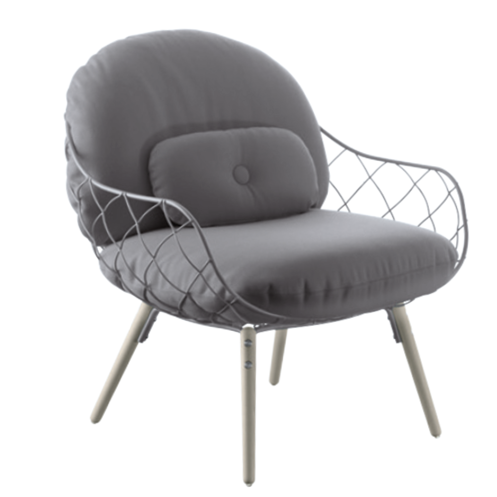 Der Sessel Piña ist ein einzigartiges Design von Jaime Hayón, geschaffen für die Marke Magis, das mit seiner außergewöhnlichen Form und hervorragenden Verarbeitung begeistert. Inspiriert von der Struktur einer Ananas, verfügt der Sessel über eine charakteristische, filigrane Konstruktion aus pulverbeschichtetem Stahlgewebe, die das weiche Sitzkissen und die Rückenlehne umschließt. Dank der Verwendung von Polsterungen aus Polyurethanschaum ist das Gesamtbild nicht nur bequem, sondern auch angenehm in der Nutzung. Die Beine aus massivem Eschenholz – in natürlicher oder lackierter Ausführung – vervollständigen das elegante Erscheinungsbild des Möbels.