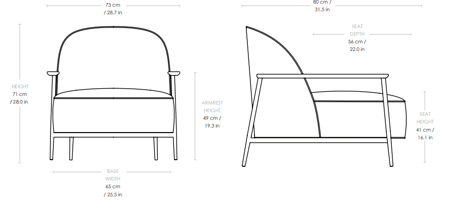 Die Version mit Armlehnen wurde um Elemente aus amerikanischem Nussbaum bereichert, die subtil auf die sanften Linien des Sessels anspielen, visuelle Leichtigkeit verleihen und verschiedene Sitzpositionen ermöglichen.