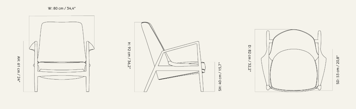 Trotz der Verwendung solider Materialien wirkt die Konstruktion des Sessels leicht – die Sitzfläche scheint in dem Holzrahmen zu schweben, was sein modernes, räumliches Erscheinungsbild unterstreicht. Das Design, benannt nach dem schwedischen Kurort Sälen, ist ein hervorragendes Beispiel für die meisterhafte Verbindung von Funktionalität und eleganter Form.