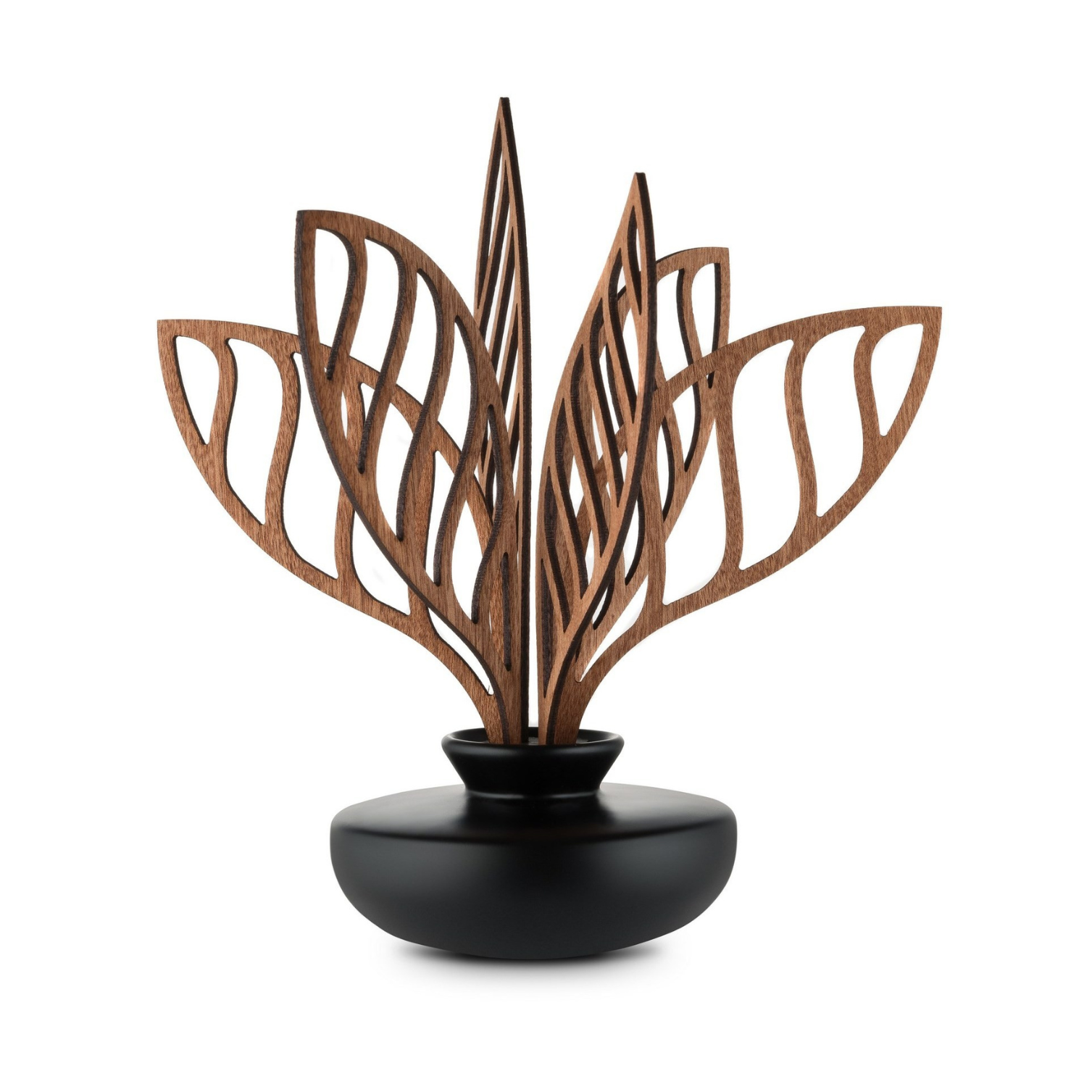 Duftdiffusor Fünf Jahreszeiten - Shhh ist ein raffiniertes Angebot für Menschen, die nach einzigartigen Duftempfindungen in ihren Innenräumen suchen. Anstelle von traditionellen Stöcken wurden stilisierte Blätter aus Mahagoniholz verwendet, die die Diffusor -Eleganz und den einzigartigen Charakter verleihen. Geruch Shhh ist eine harmonische Zusammensetzung von Notizen von Eukalyptus, Rose und Patchouli, die Aura des Geheimnisses und der Entspannung einführen.