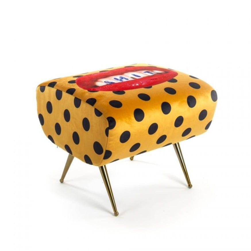 Designer Pouf Im Stil der 1950er Jahre aus dem italienischen König der Avant -Gärte - Seletti, die Wie ein Tor zu einer anderen surrealen Dimension verleiht es dem Innenraum einen einzigartigen Charakter. Polsterung mit ausdrucksstarker, dynamischer Farben und einer leicht kontroversen Collage erzeugen ein originelles Kunstwerk.