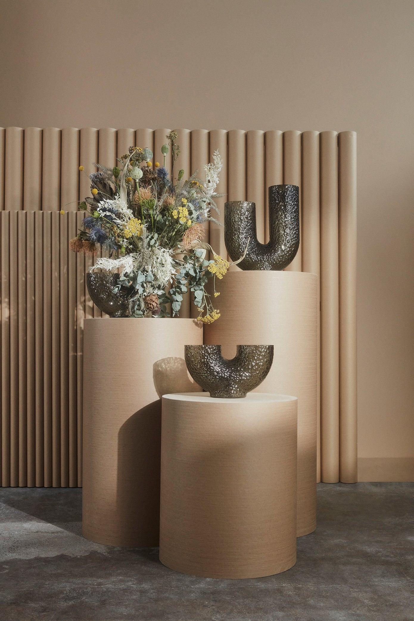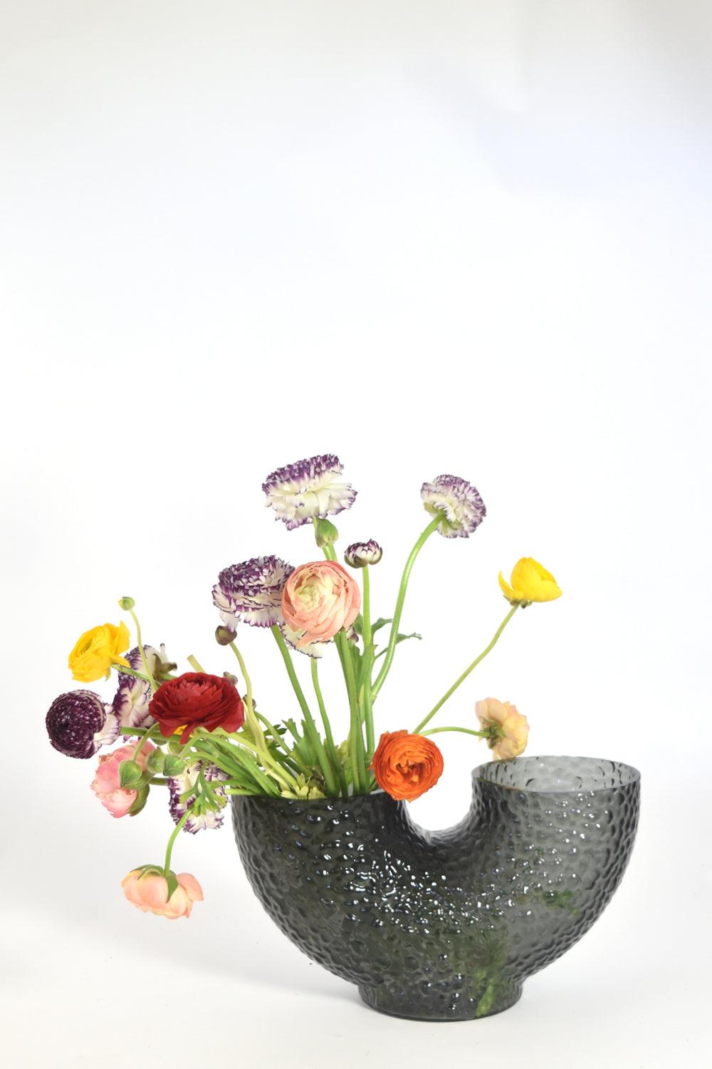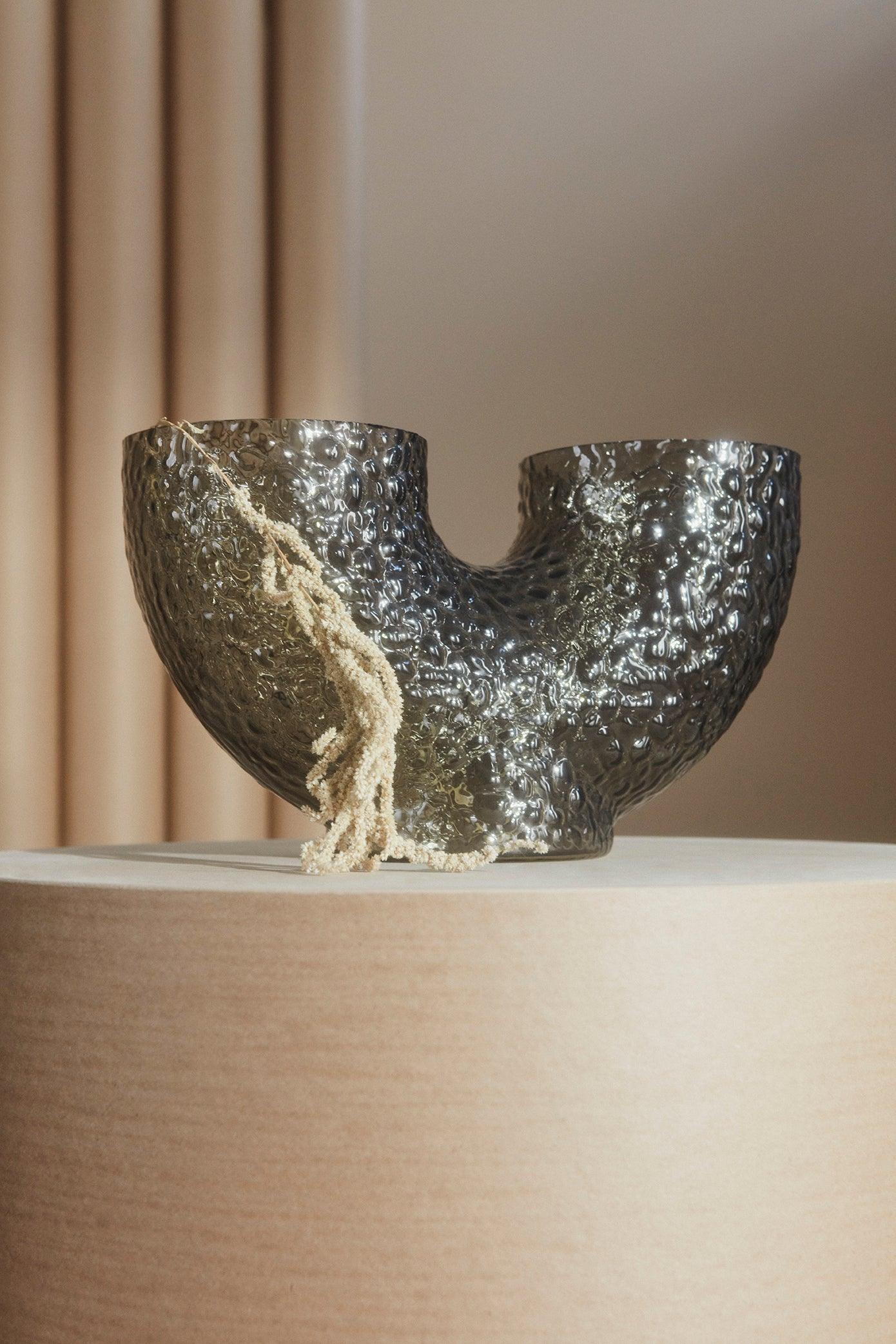 Wazony Arura sind aus mundgeblasenem Glas gefertigt, was jedes Stück einzigartig macht. Es ist ein hervorragendes Beispiel für ein exzentrisches Design, das aus dem Spiel mit Formen entstanden ist. Die dekorativen Arme der Vase sind ihr Markenzeichen — die Vase Arura hat ein modernes und gleichzeitig elegantes Aussehen. Die blasenförmige und unebene Oberfläche verleiht ihr einen Hauch von Avantgarde.