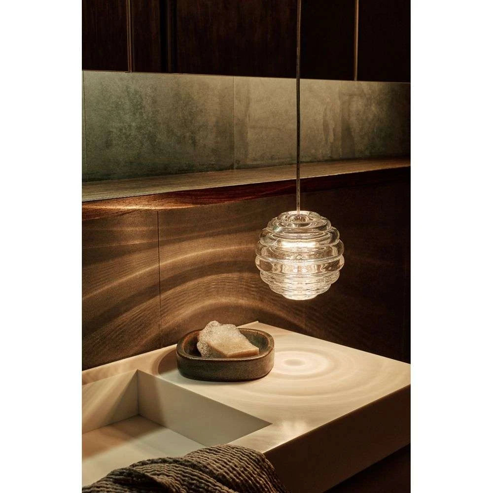 Lampe hängen Press ist ein einzigartiges Beispiel für die Artistry of Industrial Design, das für Haltbarkeit und Ästhetik entwickelt wurde. Aus dickem, transparentem gepresstem Glas, Lampe Es beeindruckt durch solide Konstruktion und ausdrucksstarke Rillen, die das Licht effektiv zusammenbrechen und ablenken. Dank seiner massiven Form und Transparenz des Materials beleuchtet die Lampe nicht nur den Raum, sondern wird auch zu einem effektiven dekorativen Element.