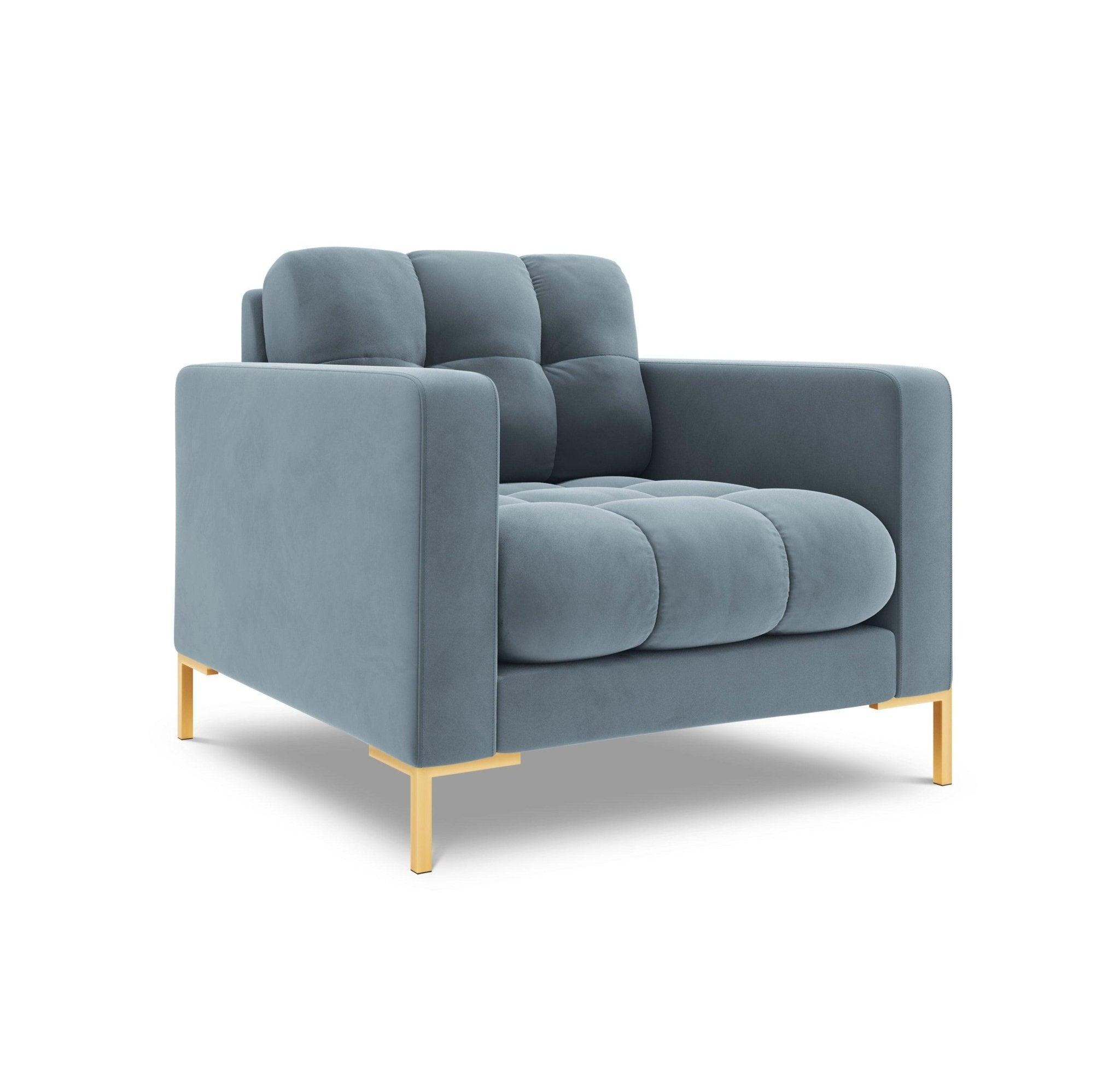 Hellblau Samt Sessel mit einer goldenen Basis