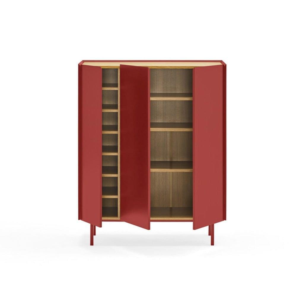 Für die Herstellung der Kommode wurde Eichenfurnier verwendet. Was die Konstruktion betrifft, so treffen die Fronten auf die Oberplatte in einem Winkel von .45º. Diese außergewöhnliche Präzision gewährleistet Kompatibilität und Konsistenz zwischen allen Teilen. Kommoden. Eine extravagante, rote Farbe bringt frischen Wind in Ihr Zuhause.