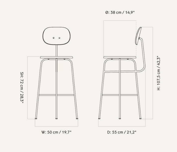 Hocker Afteroom Plus ist eine Hommage an den skandinavischen Minimalismus und funktionales Design. Entworfen mit dem Fokus auf Einfachheit der Form und Benutzerkomfort, zeichnet er sich durch klare Linien und eine subtile, leichte Konstruktion aus. Die Sitzfläche und die Rückenlehne aus furniertem Holz bringen natürliche Wärme in den Raum, während das pulverbeschichtete Stahlgestell Stabilität und Langlebigkeit garantiert. Dies ist die ideale Wahl für Kücheninseln, Bars und moderne Gastronomieräume.