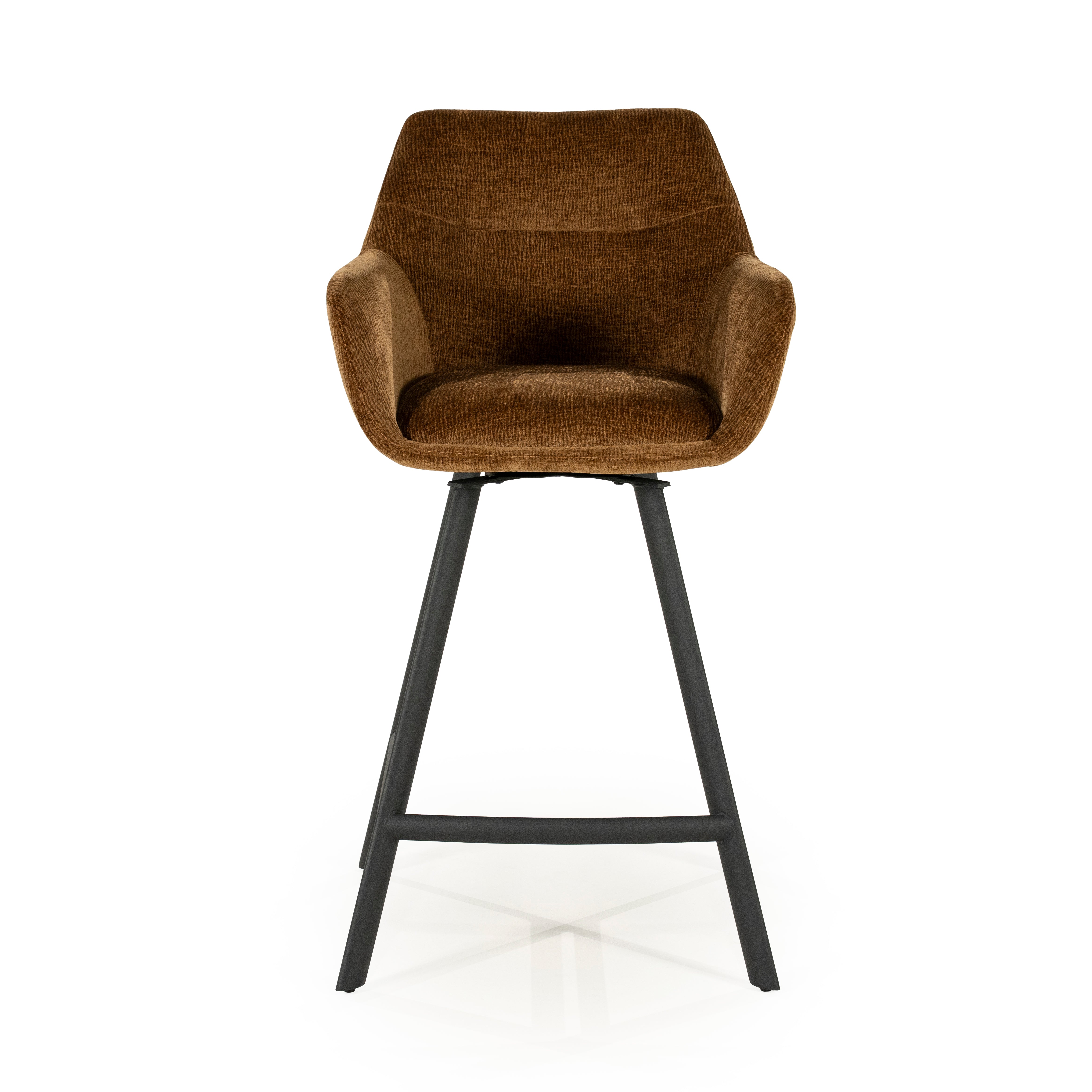 Stylischer Hocker Bliss vereint Eleganz und Komfort und schafft den idealen Sitzplatz für die Küche oder das Esszimmer mit einer Insel. Die weiche, gepolsterte Sitzfläche aus angenehm zu berührendem Kito-Stoff umschmeichelt die Silhouette, während die Armlehnen und die ergonomische Form außergewöhnlichen Sitzkomfort bieten. Die stabile Metallbasis in mattem Finish verleiht dem Ganzen einen modernen Charakter.