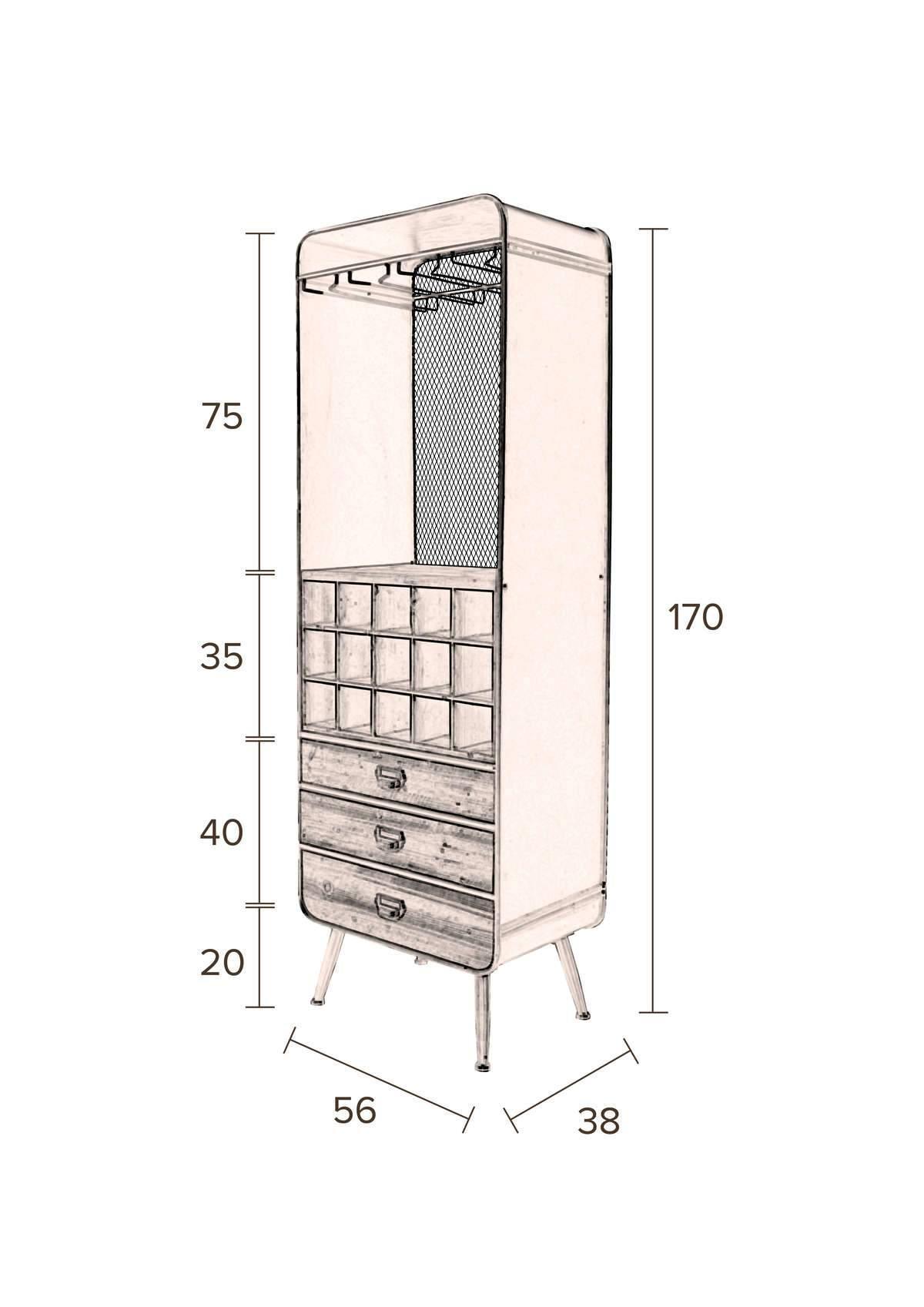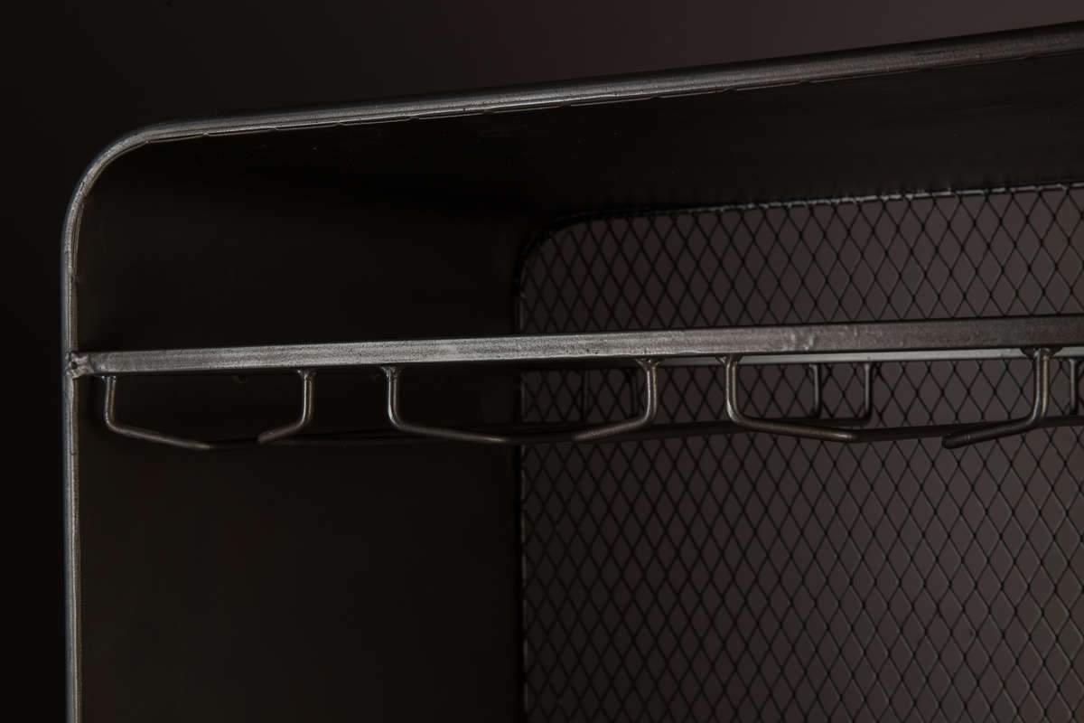 Vino ist ein stilvoller Bar, der aus hochwertigem Eisen gefertigt ist, was der gesamten Konstruktion einen charakteristischen, industriellen Stil verleiht. Der Vino Bar erinnert in seiner Ästhetik an Elemente des Loft- und Vintage-Stils. Das Modell Vino ist eine hervorragende Geschenkidee für Weinliebhaber und Design-Enthusiasten. Der Bar ist mit bequemen Ständern zur Aufbewahrung von Gläsern ausgestattet. Das Fach für Flaschen und Schubladen ist aus massivem Tannenholz.