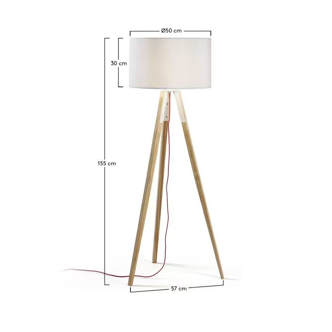 Stehlampe Dreibein IGUAZU weiß mit Holzfuß