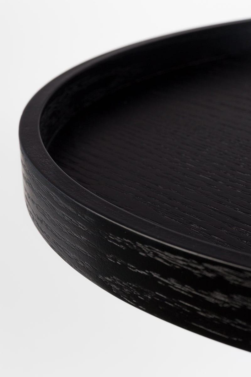 MDF -Top und Sperrholzkante mit Eichenfurnier, lackiert in Schwarz. Stahlbeinpulver in schwarz gestrichen, sandgestrahlt.