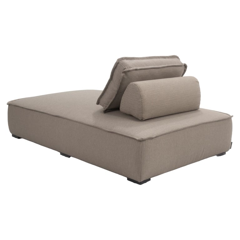 Chaise Es wurde mit hoher Qualität in einem gedämpften, natürlichen Farbton bedeckt, der nicht nur mit der Umwelt harmoniert, sondern auch Widerstand gegen Wetterbedingungen aufweist. Subtile Nähte verleihen ihm einen raffinierten Charakter, und niedrige, stabile Beine gewährleisten die Haltbarkeit und Solidität der Struktur.