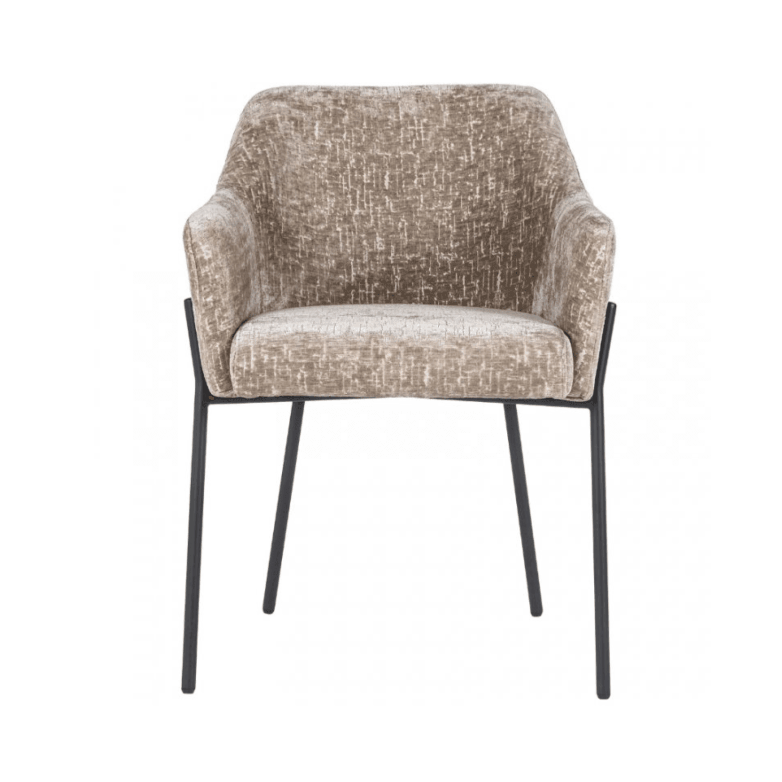 Das einzigartige Finish dieses Stuhls beginnt mit Karamell -Stoffpolster, die Wärme und Eleganz ausstrahlt. Der subtile Karamellschon bringt Gemütlichkeit und Harmonie in den Innenraum und schafft eine Atmosphäre, die sich für Entspannung und Zeit unter den Lieben fördert.
