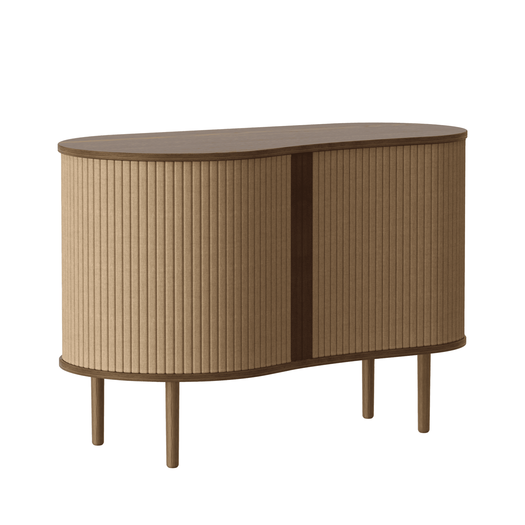 Kommode Es ist in drei ausdrucksstarken Farben erhältlich: Eiche, Dunkle Eiche und schwarze Eiche, mit Jalousien, die in sorgfältig ausgewählten Horizonts -Stofftönen erhältlich sind, die ausschließlich aus Recycling stammen. Wichtig ist, dass die Jalousien austauschbar sind, was bedeutet, dass Sie sie leicht selbst ändern können, wodurch die Möbel ein neues Aussehen verleihen und das Design erfrischen können, ohne völlig neue Möbel kaufen zu müssen. Dank dessen sparen Sie nicht nur globale Ressourcen, sondern erweitern auch die Lebensdauer der Möbel.