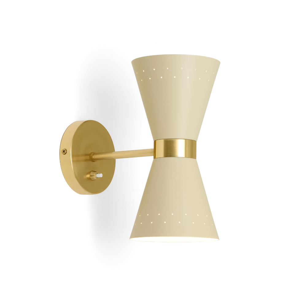 Die Collector Wandleuchte ist eine einzigartige Wandleuchte , die zeitlosen Stil mit Funktionalität verbindet. Sie wurde in den 1950er Jahren vom schwedischen Designer Alf Svensson entworfen und ist eine Ikone des Mid-Century-Designs. Das charakteristische Messingband umgibt einen konischen Metallschirm, der das Licht in zwei Richtungen abstrahlt und dank der filigranen Perforationen einen subtilen Lichteffekt erzeugt.
