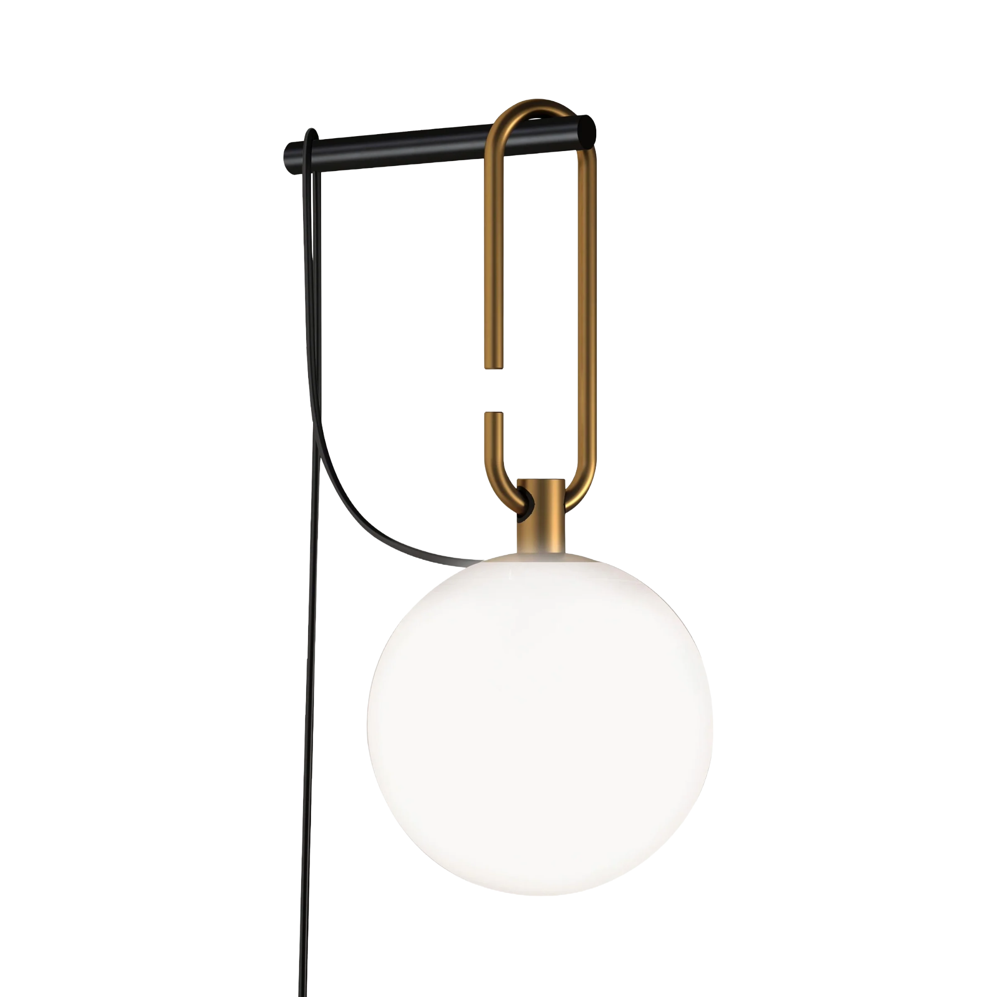 Wandleuchte NH schwarz mit messingfarbenem und weißem Glas