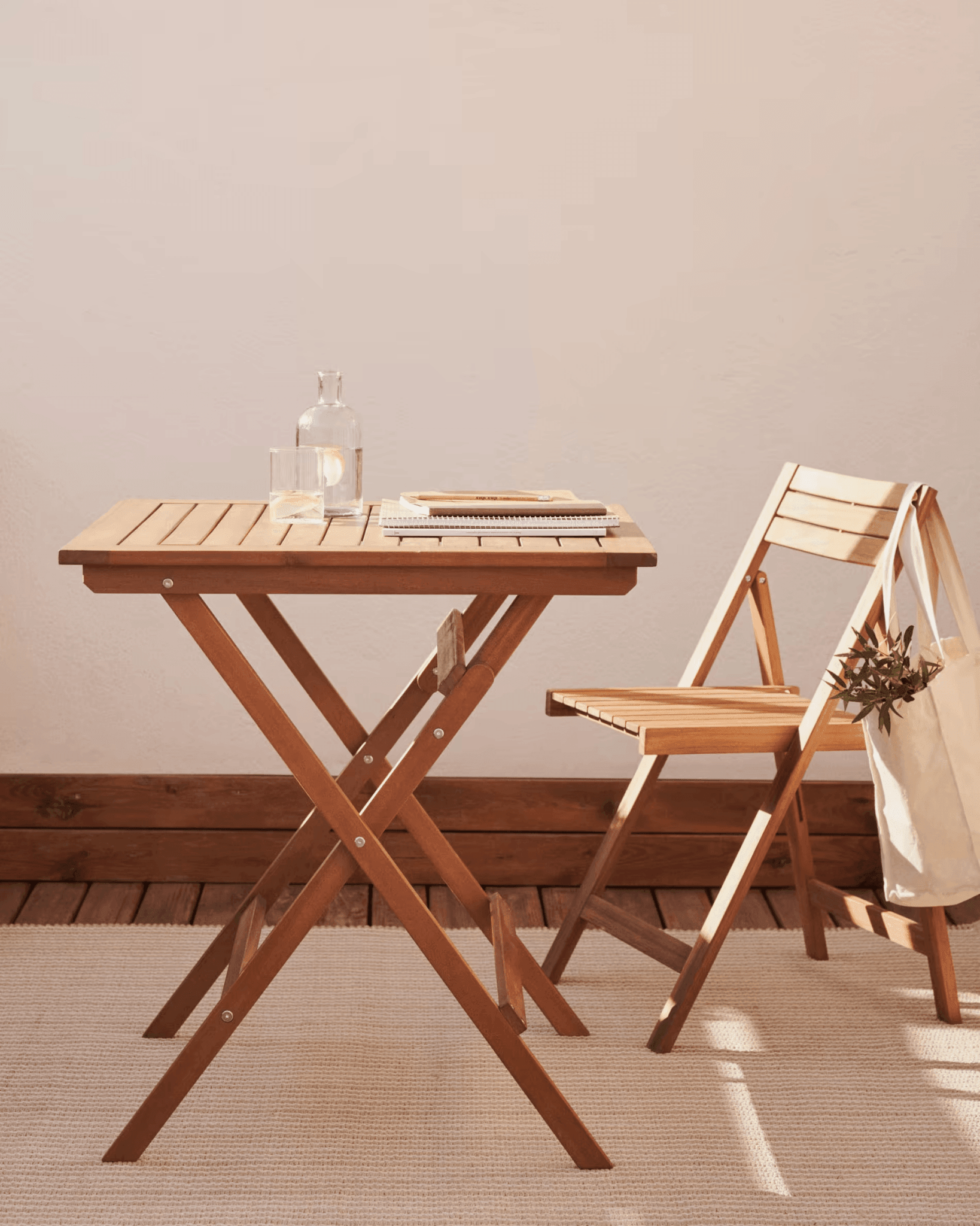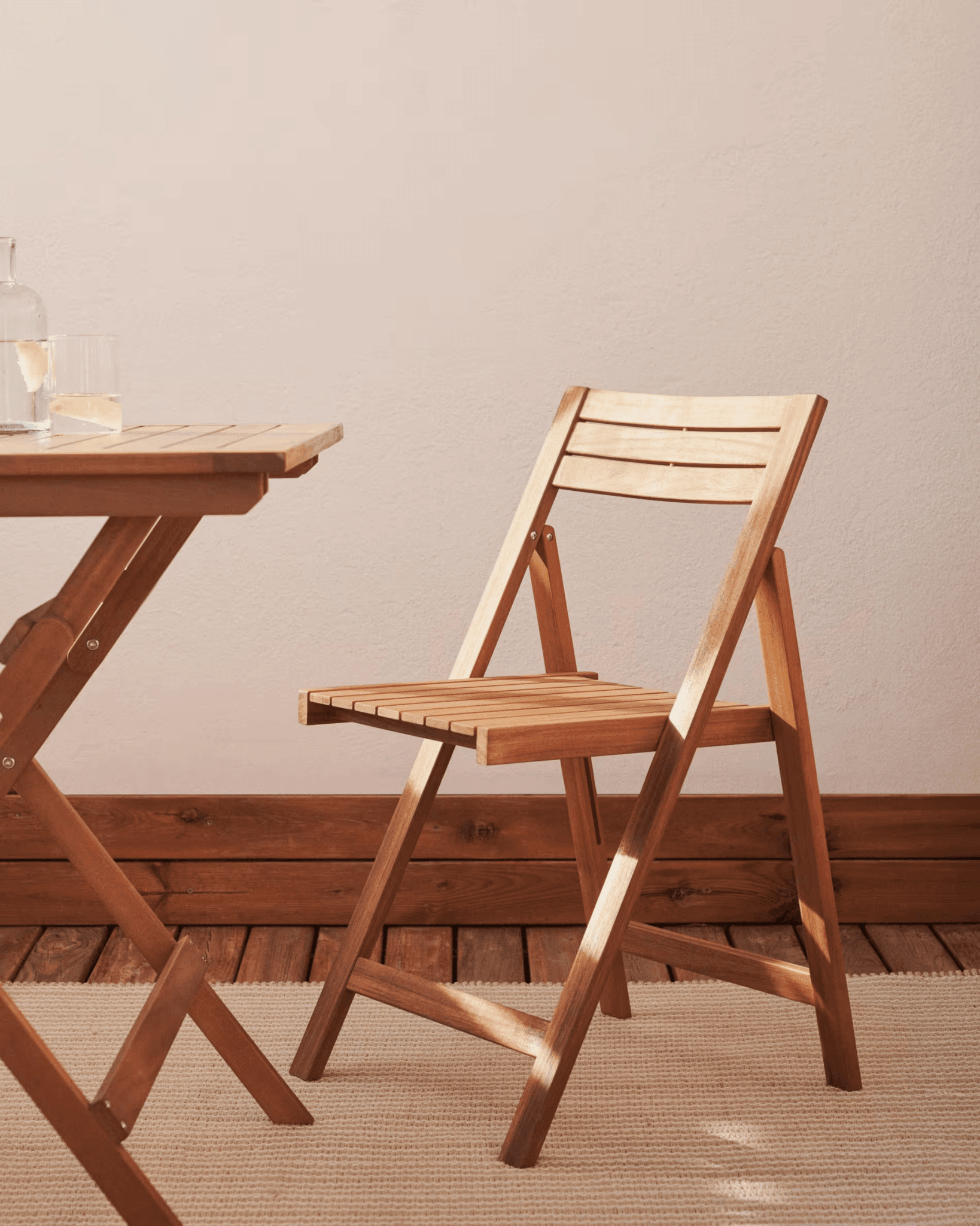 Sadirar ist perfekt, um kleinere Räume draußen zu genießen. Der Stuhl ist gegen die Sonne resistent und gefaltet, sodass er während der Lagerung weniger Platz einnimmt. Im Freien ist jeder weitere Messgerät willkommen.