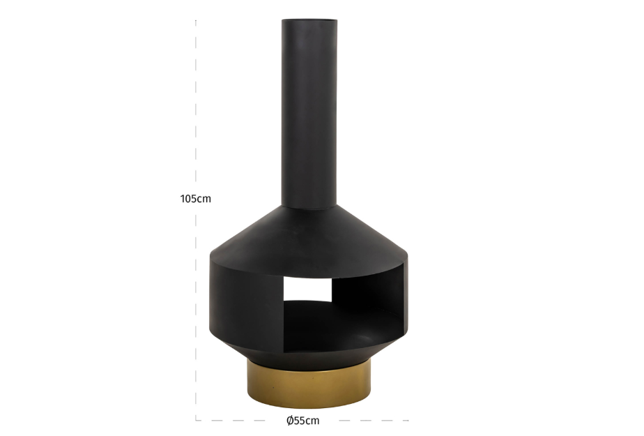 Gartenkamin QUINN schwarz mit goldenem Sockel