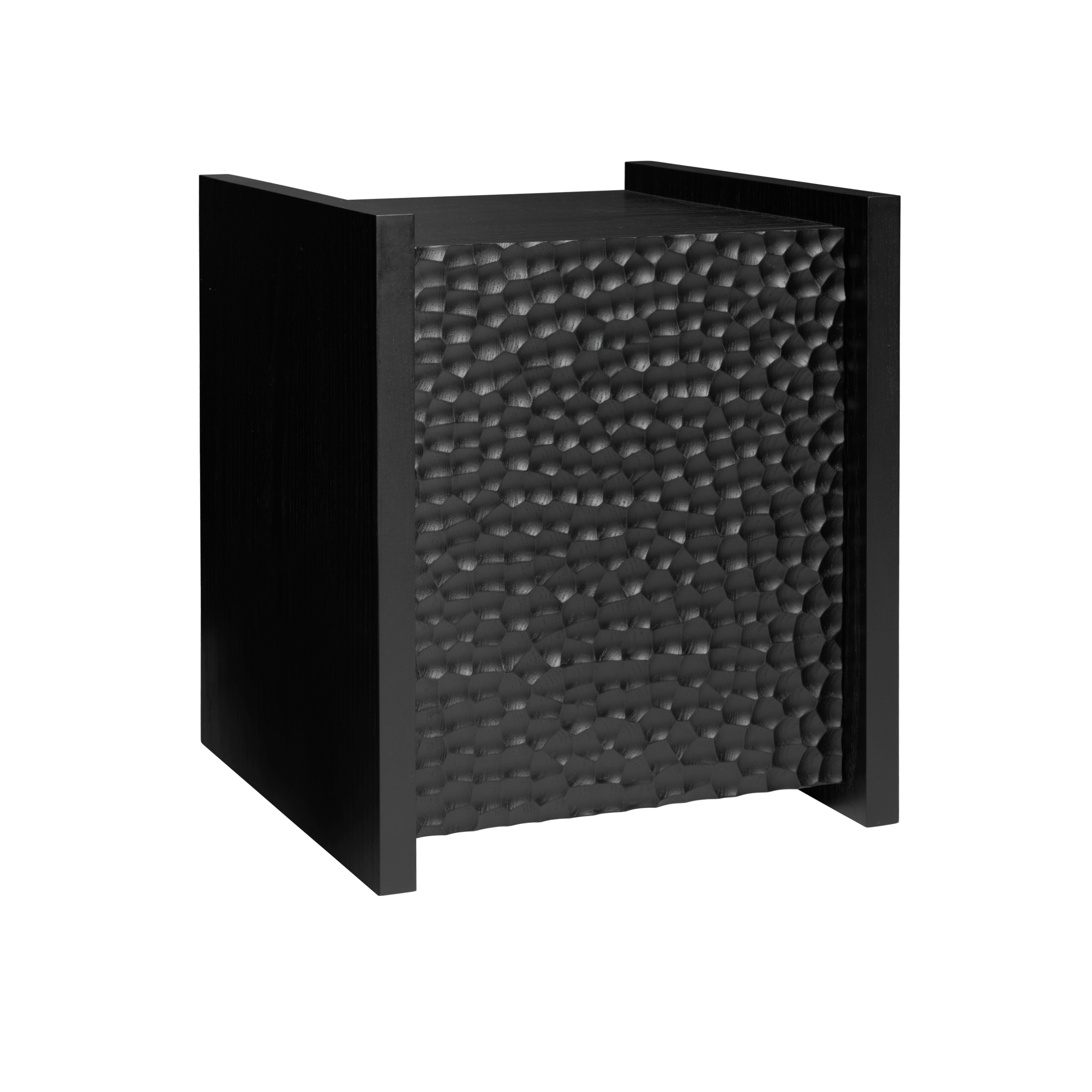 Kommode Scarni ist ein ausdrucksstück und funktionales Möbelstück zur Aufbewahrung, das sich hervorragend im Wohnzimmer, Esszimmer oder im Büro einfügt. Hergestellt aus massivem Eschenholz und dunkel furniert, zieht es mit seiner eleganten, architektonischen Form die Blicke auf sich. Die Front der Kommode zeichnet sich durch eine dekorative, texturierte Oberfläche aus, die subtil das Licht reflektiert und einen Effekt von Tiefe und Schatten erzeugt. Die einfache, geometrische Konstruktion kombiniert mit markanten Details verleiht dem Gesamtbild einen modernen und zugleich zeitlosen Charakter.