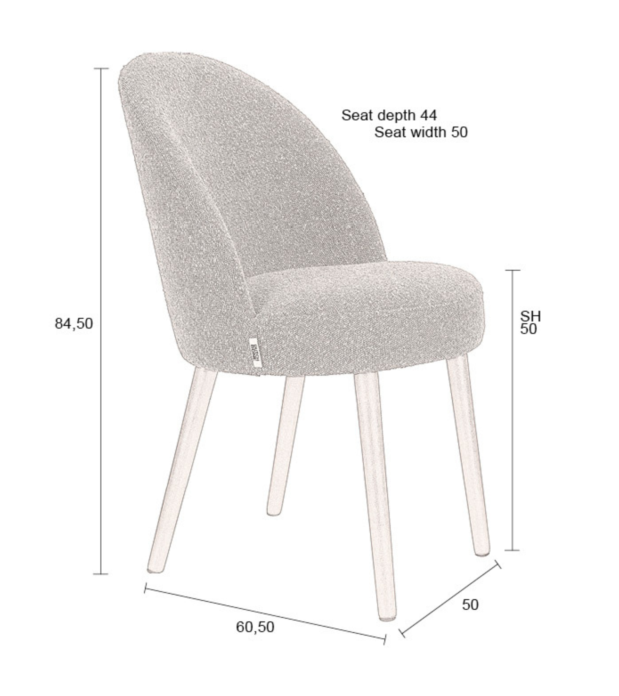 Stuhl Barbara bringt eine außergewöhnliche Atmosphäre von Wärme und Gemütlichkeit in Ihr Esszimmer. Sein schalenförmiger Sitz, bezogen mit weichem Bouclé-Stoff, lädt förmlich dazu ein, sich darin niederzulassen – er eignet sich perfekt für lange Abende am Tisch. Die charakteristische Textur des Materials verleiht ihm ein angenehmes, heimisches Aussehen, das wunderbar mit dem tiefen Finish der Beine in Walnussfarbe harmoniert. Dies ist ein Stuhl, der nicht nur durch seinen Komfort begeistert, sondern auch den Raum mit einem subtilen Retro-Akzent bereichert.
