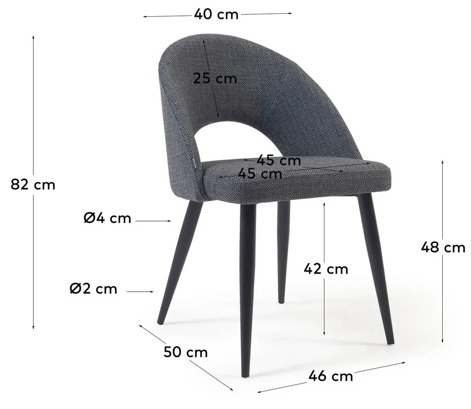 Polsterstuhl Mael in dunkelgrauem Chenille-Stoff vereint Komfort und zeitlosen Stil. Die ergonomische Sitzfläche mit weicher Schaumstoffpolsterung sorgt für Bequemlichkeit während der täglichen Mahlzeiten sowie bei längeren Zusammenkünften am Tisch. Die schlanken Beine aus schwarz lackiertem Stahl verleihen der Konstruktion Leichtigkeit und garantieren gleichzeitig Stabilität und Langlebigkeit.
