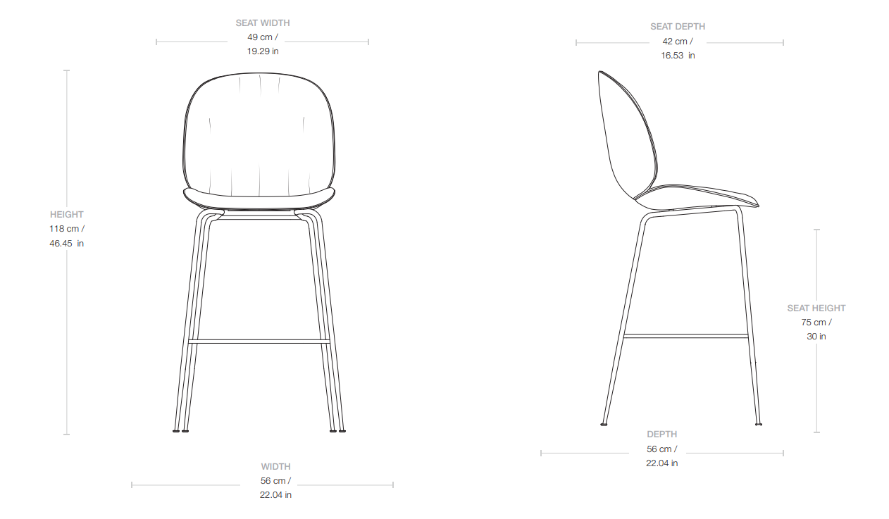 Barhocker Beetle Soft ist eine außergewöhnlich komfortable Variante des ikonischen Designs, die moderne Eleganz mit Weichheit und Freiheit der Form verbindet. Es bewahrt die charakteristische Silhouette des Beetle-Designs und führt gleichzeitig eine lockerere Polsterung sowie eine Kante ohne Biese ein. Dadurch setzt der Barhocker auf Bequemlichkeit und passt perfekt zu den Bedürfnissen zeitgemäßer Innenräume, die auf Komfort ausgerichtet sind.