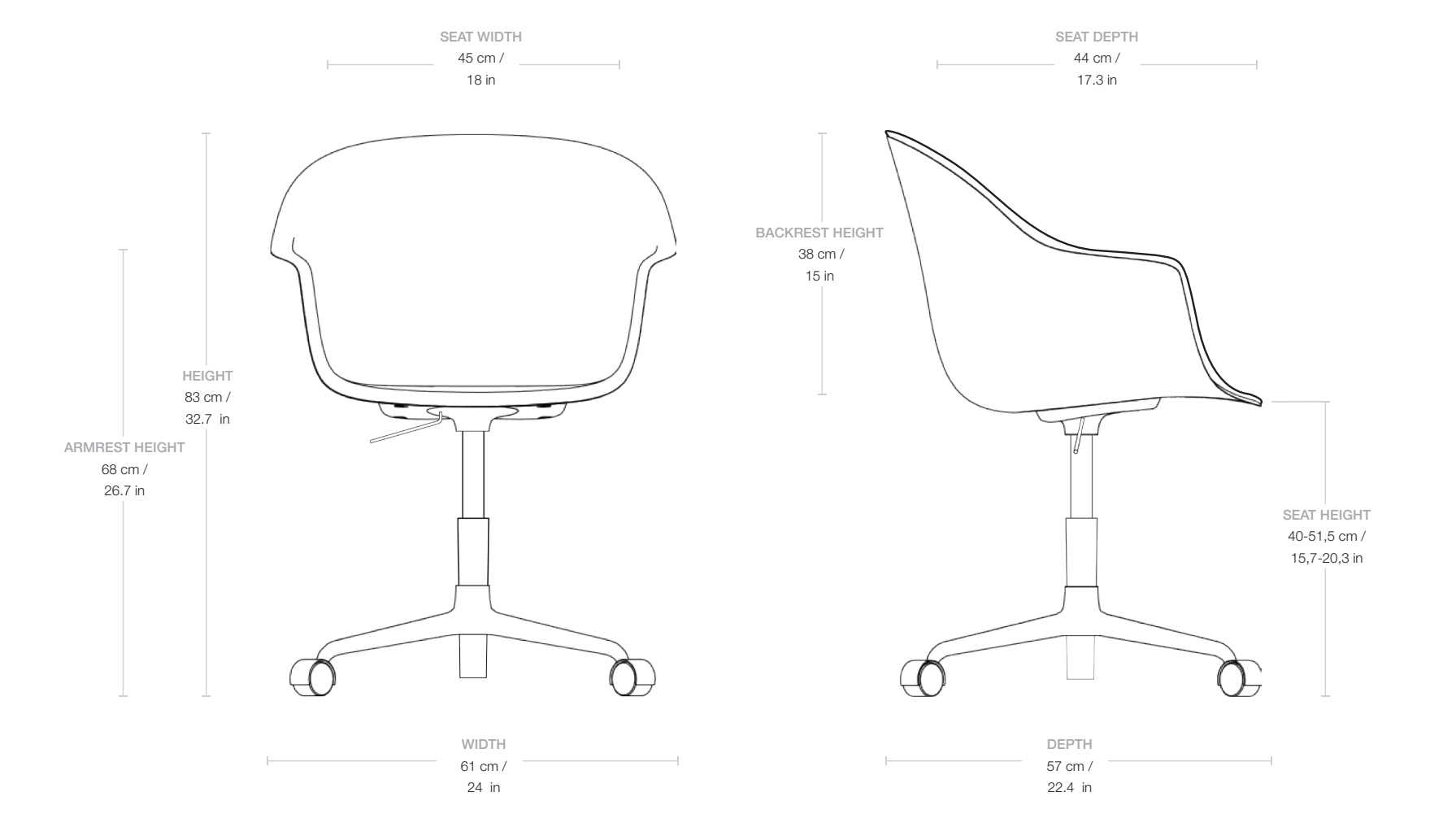 Bürostuhl Bat in der vollständig gepolsterten Version ist das Ergebnis der Zusammenarbeit des dänisch-italienischen Design-Duos GamFratesi, das ein außergewöhnliches Möbelstück geschaffen hat, das skandinavischen Minimalismus mit Funktionalität verbindet. Die charakteristische Form der Rückenlehne, inspiriert von den Flügeln einer Fledermaus, sowie die ergonomischen Armlehnen sorgen für Komfort und ein ansprechendes Aussehen. Die verstellbare Höhe und das mobile Gestell auf Rollen machen den Bat ideal für dynamische Arbeitsumgebungen – sowohl im Büro als auch im heimischen Arbeitszimmer.