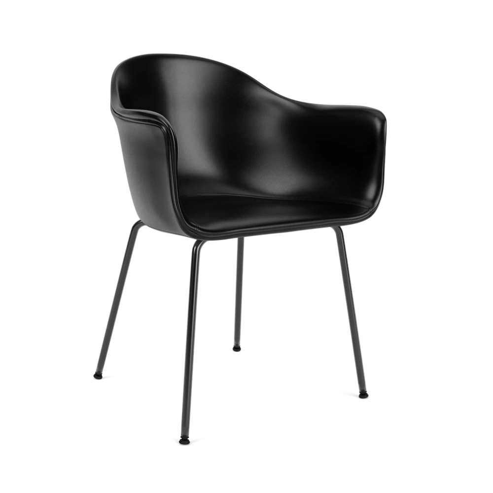 Der Stuhl Harbour ist ein modernes und vielseitiges Design des dänischen Studios Norm Architects, das für den Raum Audo House in Kopenhagen geschaffen wurde. Organische Formen und eine elegante Silhouette verbinden sich hier mit Funktionalität und Komfort und schaffen ein ideales Möbelstück sowohl für das Zuhause als auch für öffentliche Räume. Breite Armlehnen und eine hohe Rückenlehne bieten ergonomische Unterstützung, während das schlanke Stahlgestell der gesamten Konstruktion Leichtigkeit verleiht.