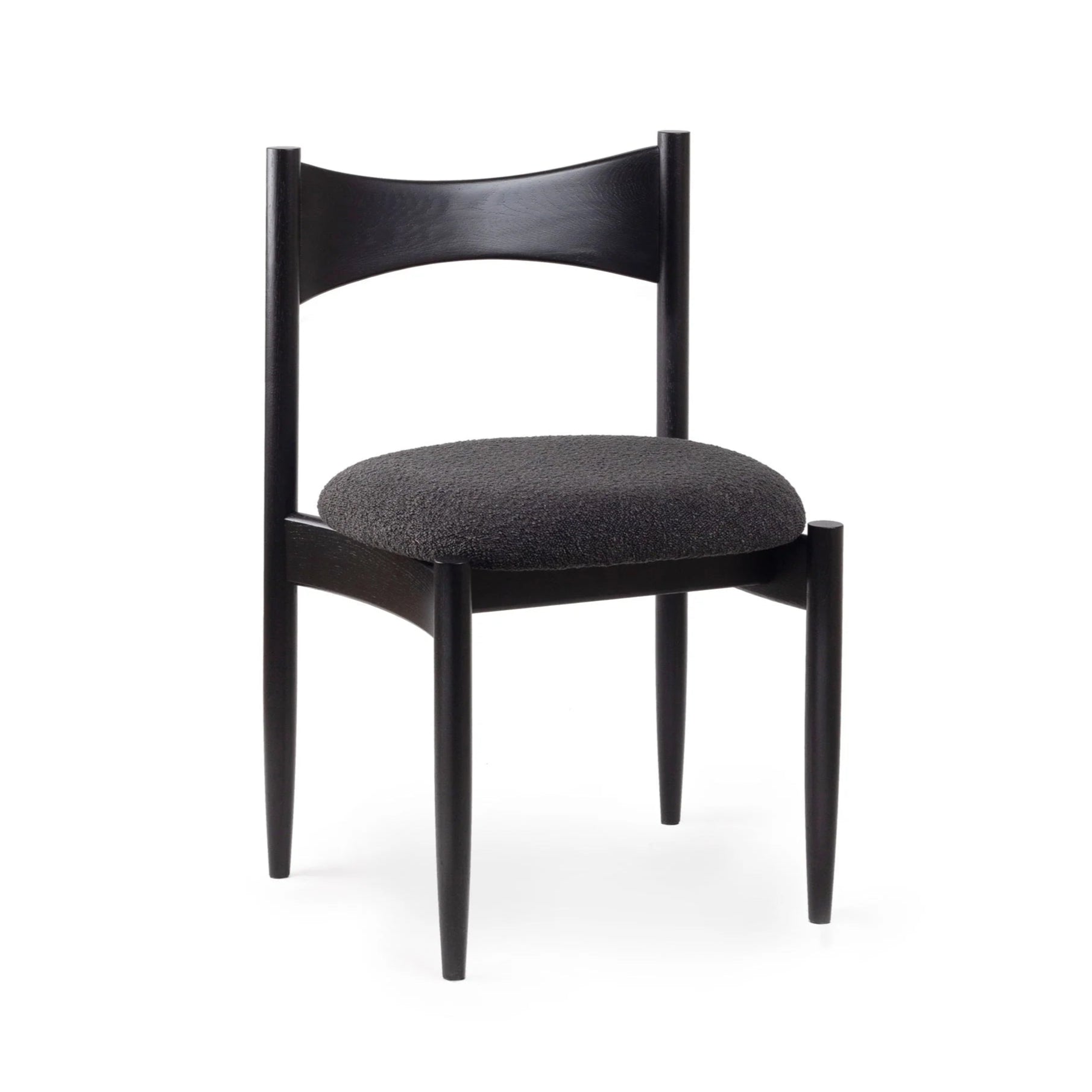 Stuhl Kemi ist eine harmonische Verbindung von Komfort, Tischlerkunst und zeitlosem Design. Die charakteristische gefräste Rückenlehne, schlanke Beine und die sanft geschwungenen Linien der Basis verleihen ihm einen skulpturalen Ausdruck, während das weiche, gepolsterte Kissen auch bei langen Tischgesprächen für Bequemlichkeit sorgt. Dieser Stuhl wurde für den täglichen Gebrauch entworfen – robust, ergonomisch und stilvoll.