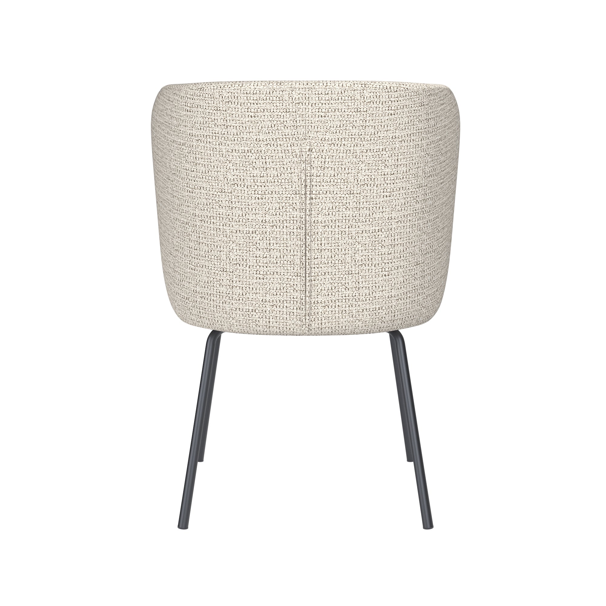 Das Gestell aus Metall verleiht der Konstruktion Stabilität und Langlebigkeit, während es gleichzeitig einen Kontrast zum weichen Material der Sitzfläche bildet. Der Stuhl eignet sich sowohl für das Esszimmer als auch für Büros oder Entspannungsräume, in denen Funktionalität und modernes Design zählen.