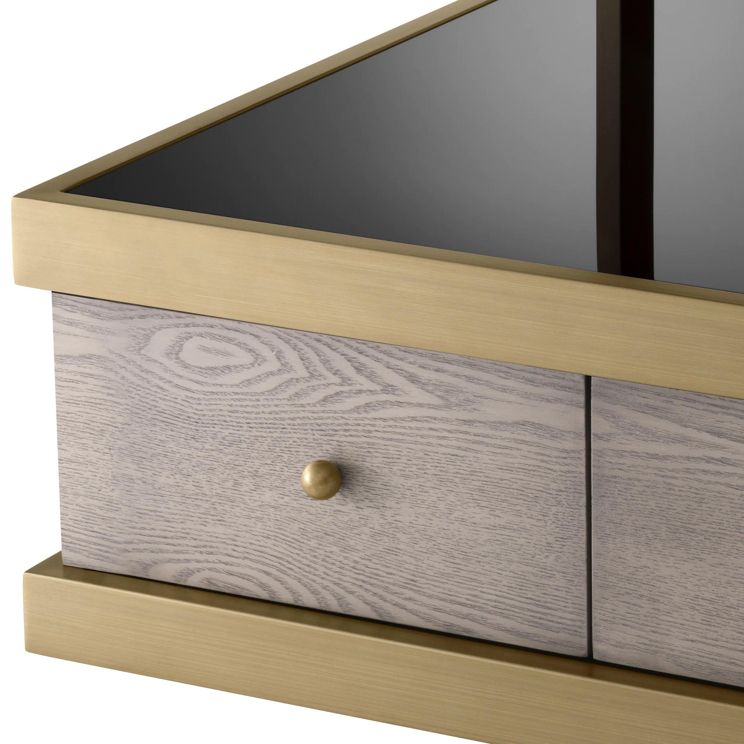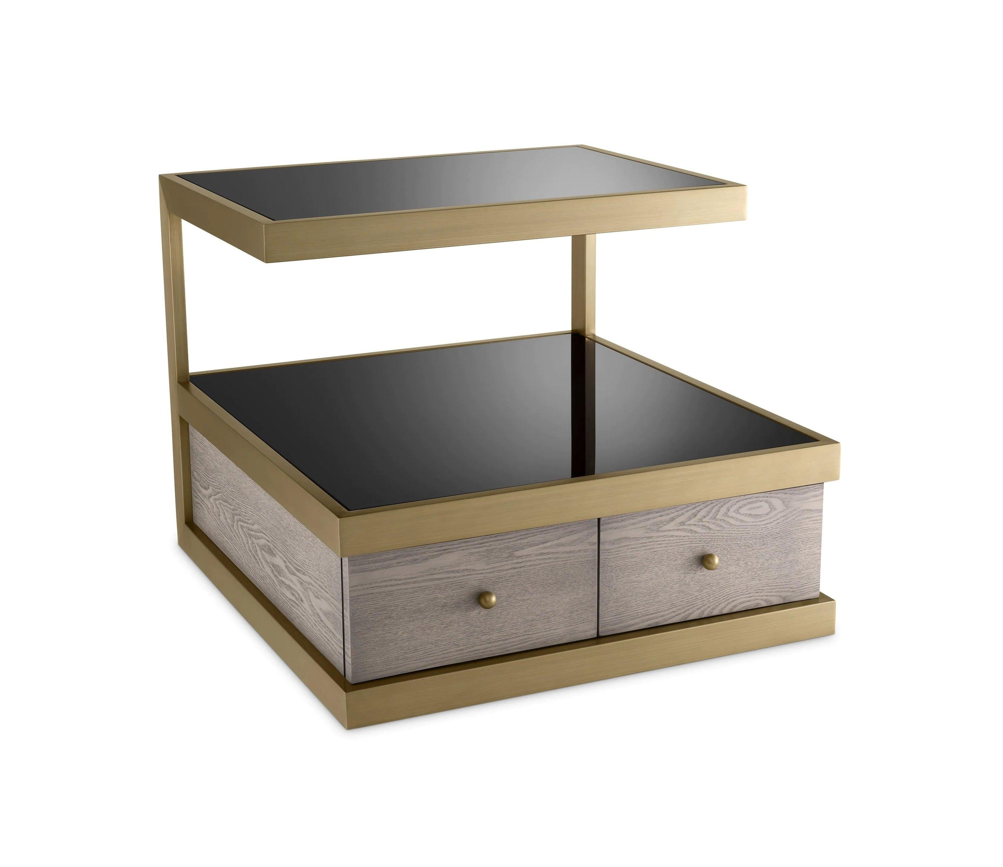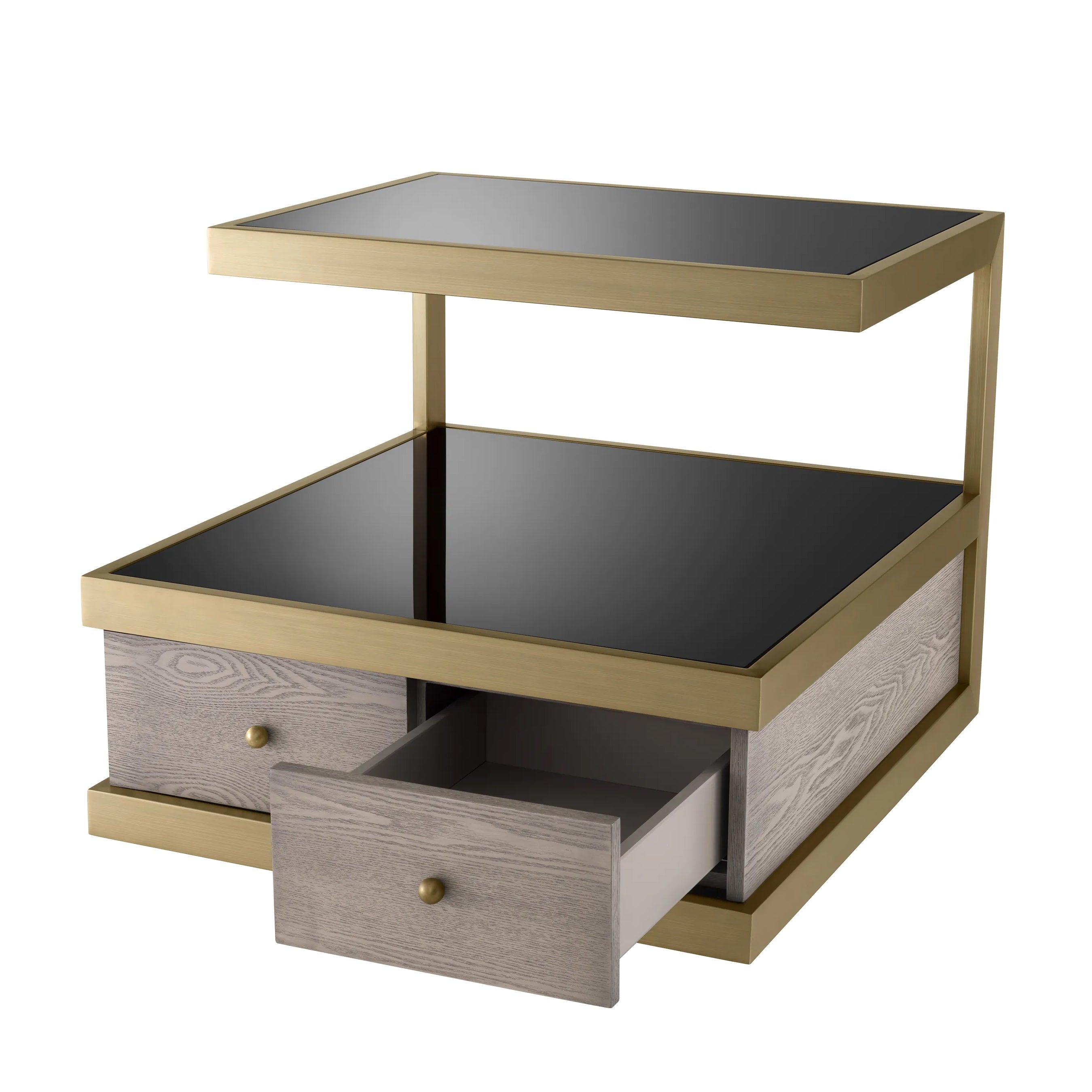 Stolik boczny KUBOA czarne szkło z szczotkowanym mosiądzem Eichholtz    Eye on Design