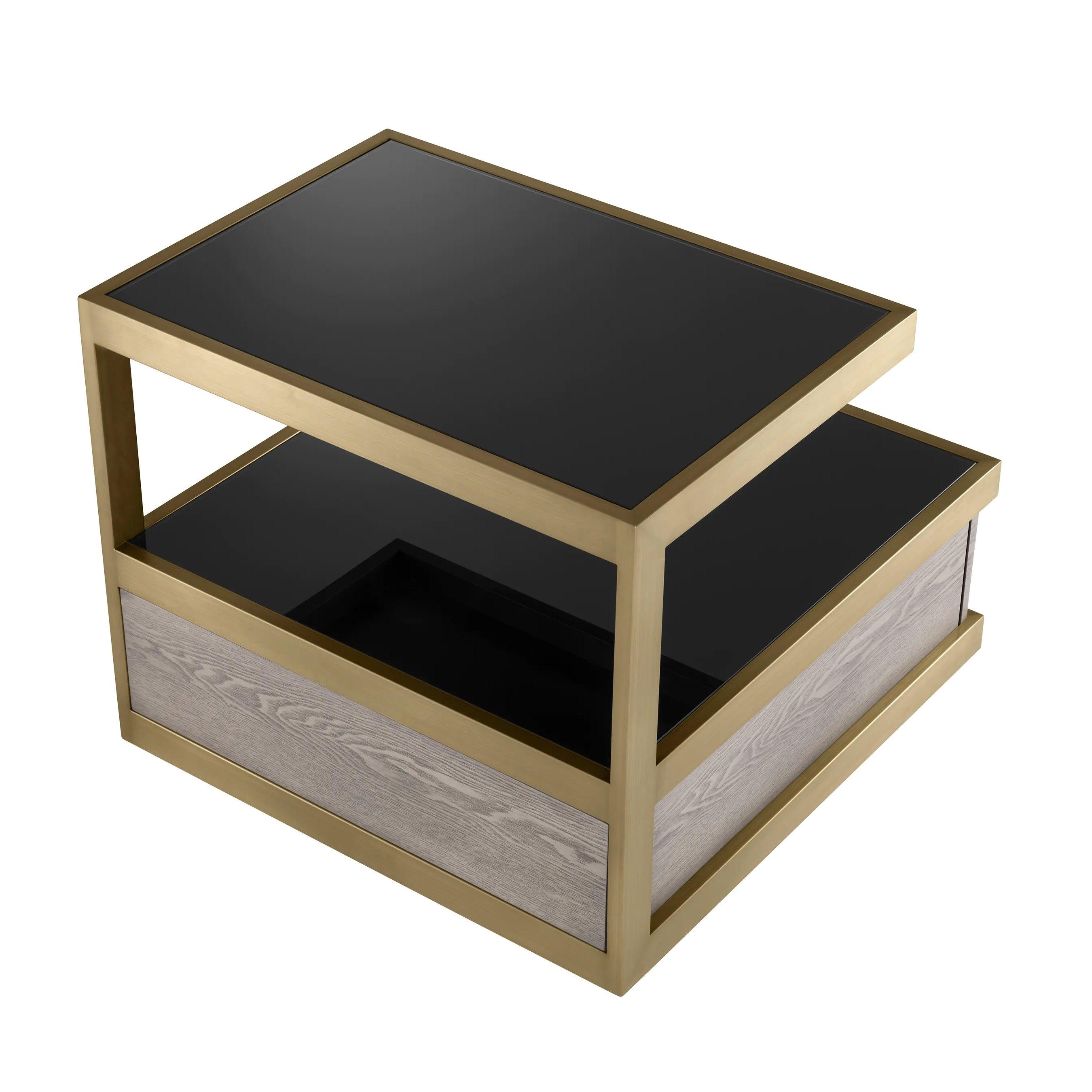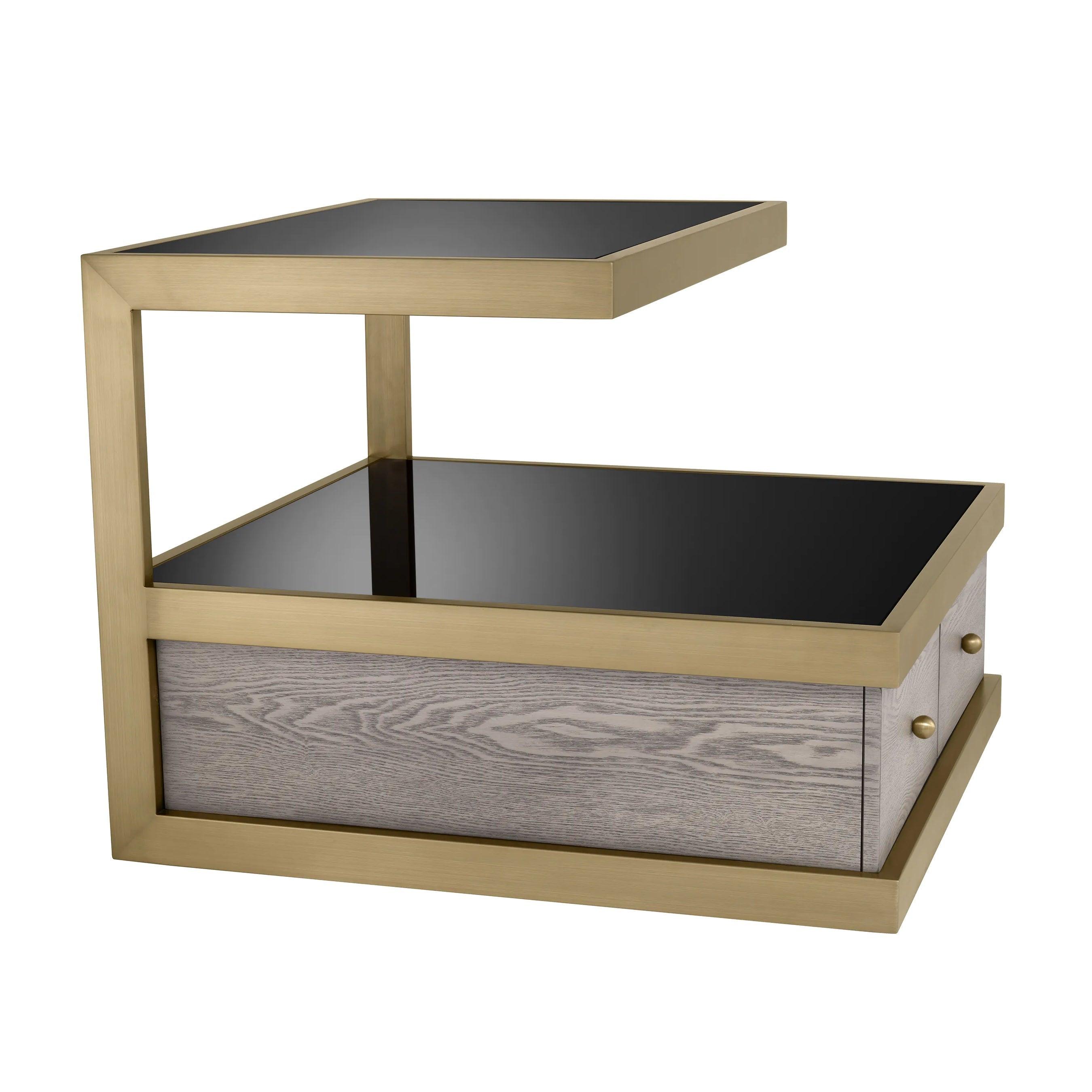 Kuboa Sidetisch schwarzes Glas mit gebürstetem Messing