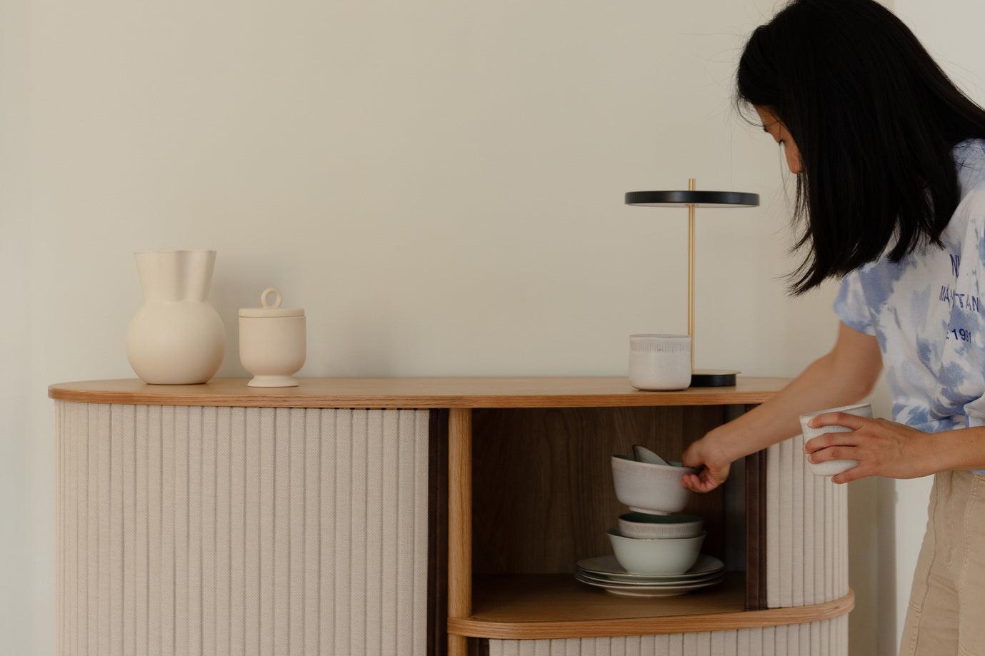 Die audrisierten Sideboard -Jalousien können leicht ersetzt werden, wodurch Sie das Aussehen der Möbel auffrischen können, ohne dass ein völlig neuer Kauf gekauft werden muss. Dank dessen sparen Sie natürliche Ressourcen und erweitern die Nützlichkeit der Möbel.