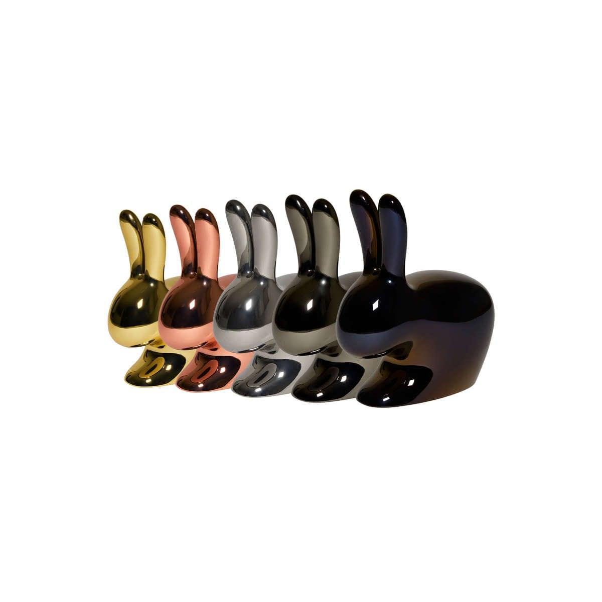 Stuhl Rabbit Baby in Kupfer ist ein Möbelstück aus der limitierten Kollektion der Marke QeeBoo. Dieses außergewöhnliche Accessoire kann das Aussehen des Kinderzimmers völlig verändern, indem es viel Extravaganz und einen unkonventionellen Stil sowie außergewöhnliche Lässigkeit einbringt. Dieses Modell ist ein Werk von Stefano Giovannoni, der auch viele andere Artikel mit dem Hasenmotiv geschaffen hat.