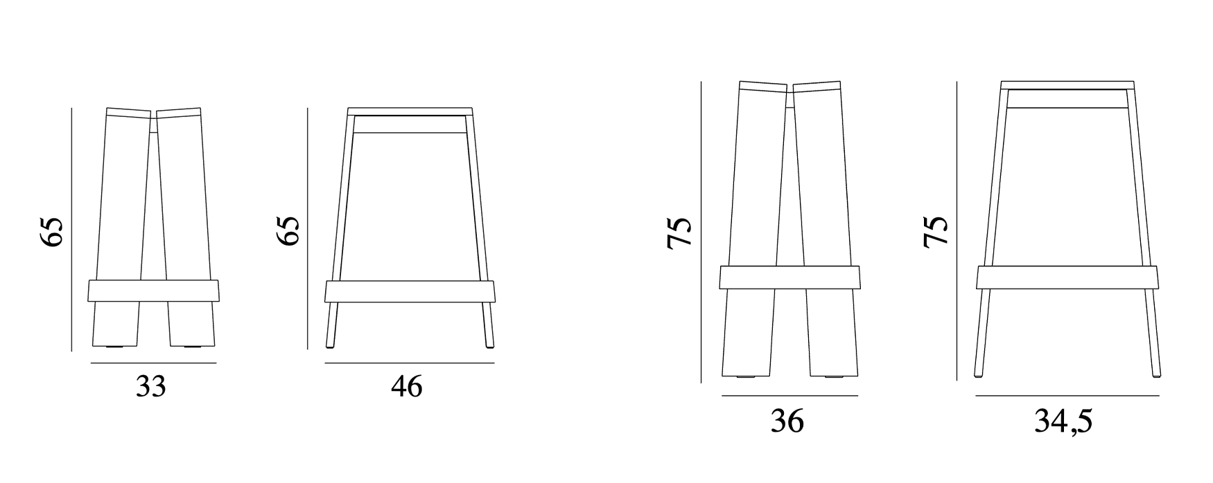 Barhocker Let ist eine Verbindung von minimalistischer Form und Funktionalität, die sich durch eine einfache, aber durchdachte Konstruktion auszeichnet. Er besteht aus zwei parallelen, leicht geneigten Brettern, was nicht nur Stabilität gewährleistet, sondern auch eine natürlich bequeme Sitzprofilierung schafft. Dank dieser subtilen Konstruktion bietet der Barhocker Let Komfort, der sich ideal in Räumen wie Bars, Küchen oder Esszimmern bewährt.