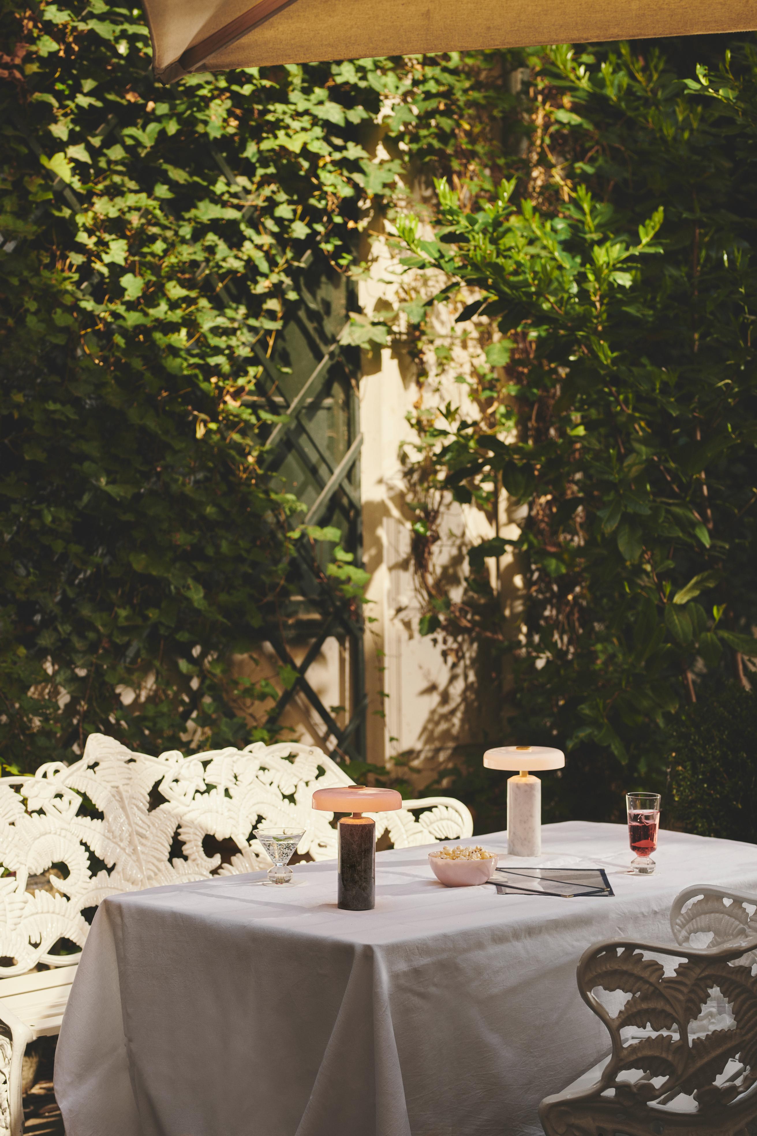Hergestellt aus poliertem Marmor und mundgeblasenem Glas, verbindet die Lampe Trip natürliche Materialien mit durchdachten Details. Sie ist mit einem berührungsempfindlichen, dreistufigen Dimmer ausgestattet, sodass Sie die Lichtintensität leicht an die Situation anpassen können – von einem gemütlichen Abend bis hin zu funktionaler Beleuchtung während eines Treffens. Die lange Akkulaufzeit und die sorgfältige Verarbeitung machen die tragbare Lampe Trip sowohl zu einer praktischen Lichtquelle als auch zu einem stilvollen dekorativen Accessoire.