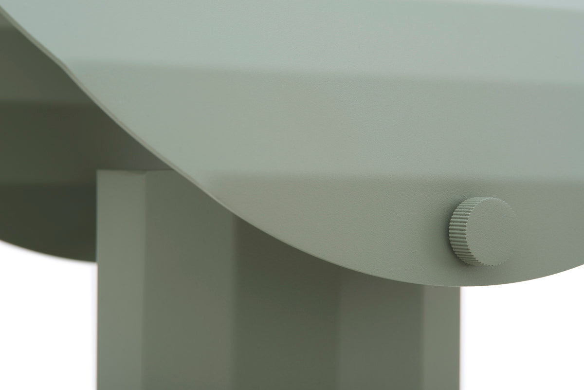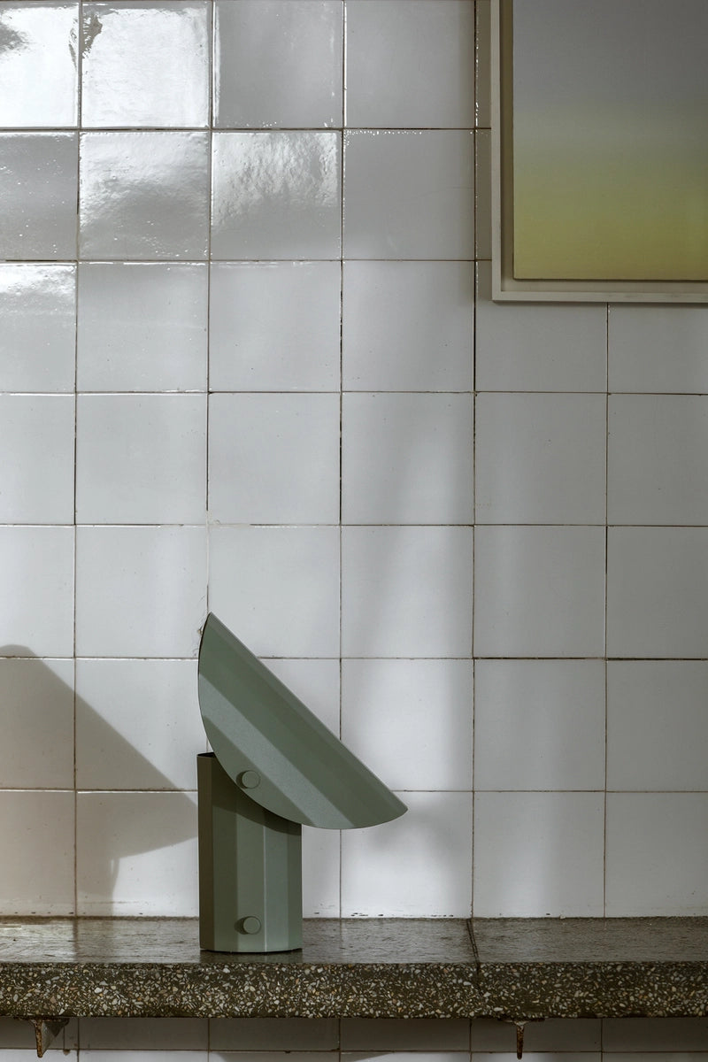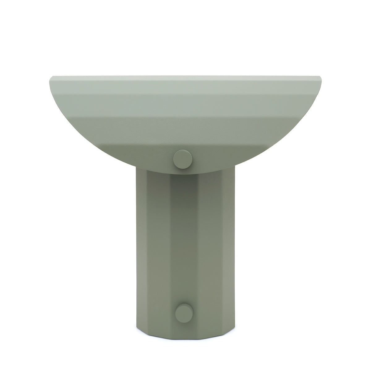 Tischlampe Apolin des Grynasz Studios ist ein außergewöhnliches Beispiel für modernes Design, inspiriert von industriellem Design aus der Mitte des 20. Jahrhunderts. Ihre Form erinnert an Modelle, die in den Werkstätten MEOS und ZAOS geschaffen wurden, und der facettierte Schirm fungiert als Reflektor, der das Licht auf sanfte und stimmungsvolle Weise streut. Die Konstruktion aus pulverbeschichtetem, profiliertem Edelstahl in einem subtilen, salbeigrünen Farbton fügt sich harmonisch in die modernistische Ästhetik ein. Die Tischlampe verfügt über einen integrierten Dimmer, der eine Anpassung der Lichtintensität ermöglicht, was sie praktisch und komfortabel für den täglichen Gebrauch macht.