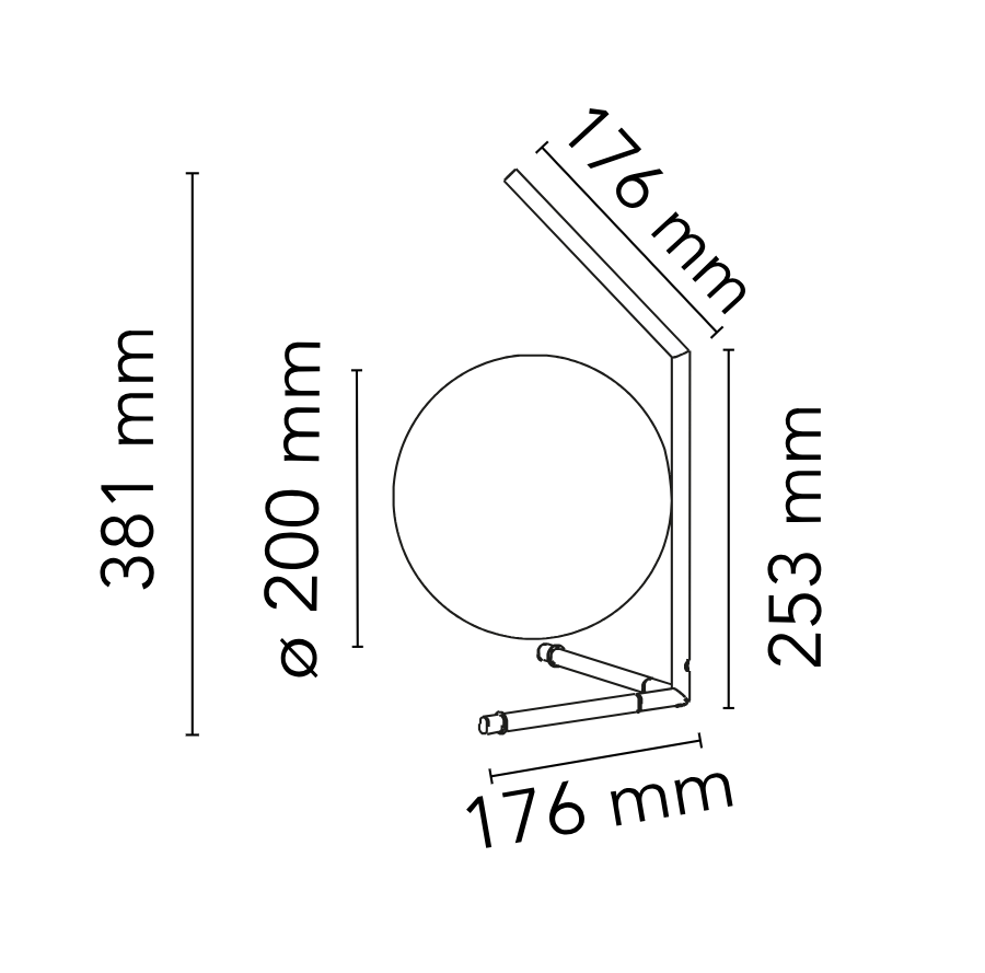 Materiały: Rama pozłacana 24-karatowym złotem, klosz z dmuchanego szkła opalowego