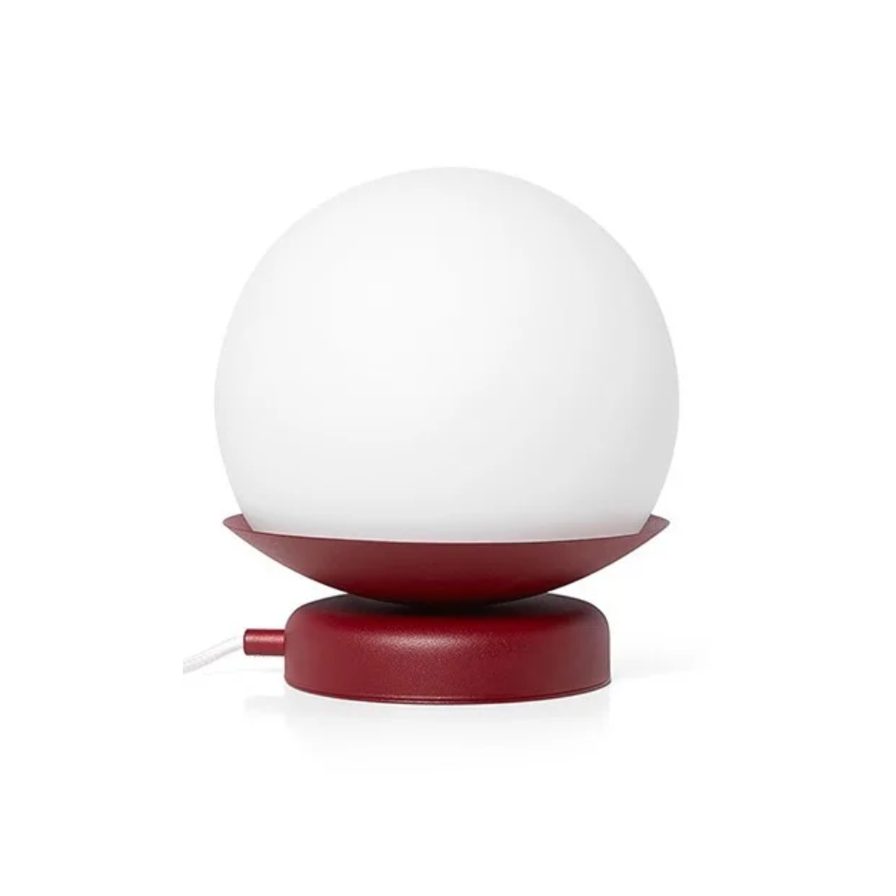 Die Tischlampe Kuul ist eine kompakte Leuchte, die den Raum dezent ergänzt. Ihr kugelförmiger Lampenschirm auf geometrischem Sockel gleicht einem leuchtenden Objekt, das tagsüber elegante Akzente setzt und abends eine gemütliche Atmosphäre schafft. Dank seiner geringen Größe eignet es sich hervorragend für einen Nachttisch, einen Schreibtisch, eine Kommode oder eine Fensterbank.