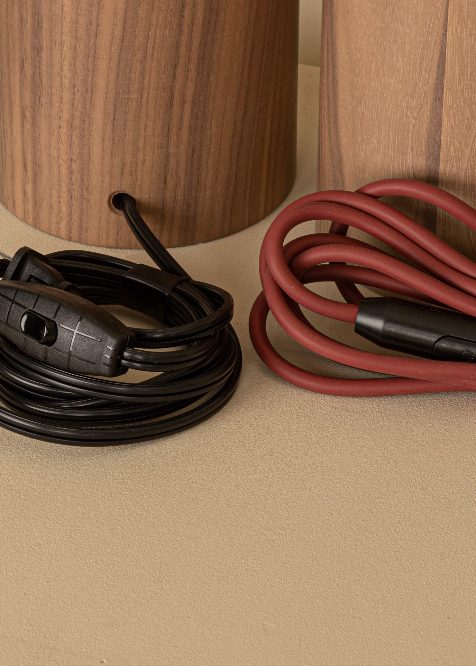 Ein einzigartiges Merkmal, das abnehmbare Untergestell, verleiht dieser Tischlampe Funktionalität und modernen Charakter. Holz als Naturmaterial sorgt dafür, dass jedes Stück leicht in Farbton und Textur variiert, wodurch jedes Exemplar einzigartig wird.