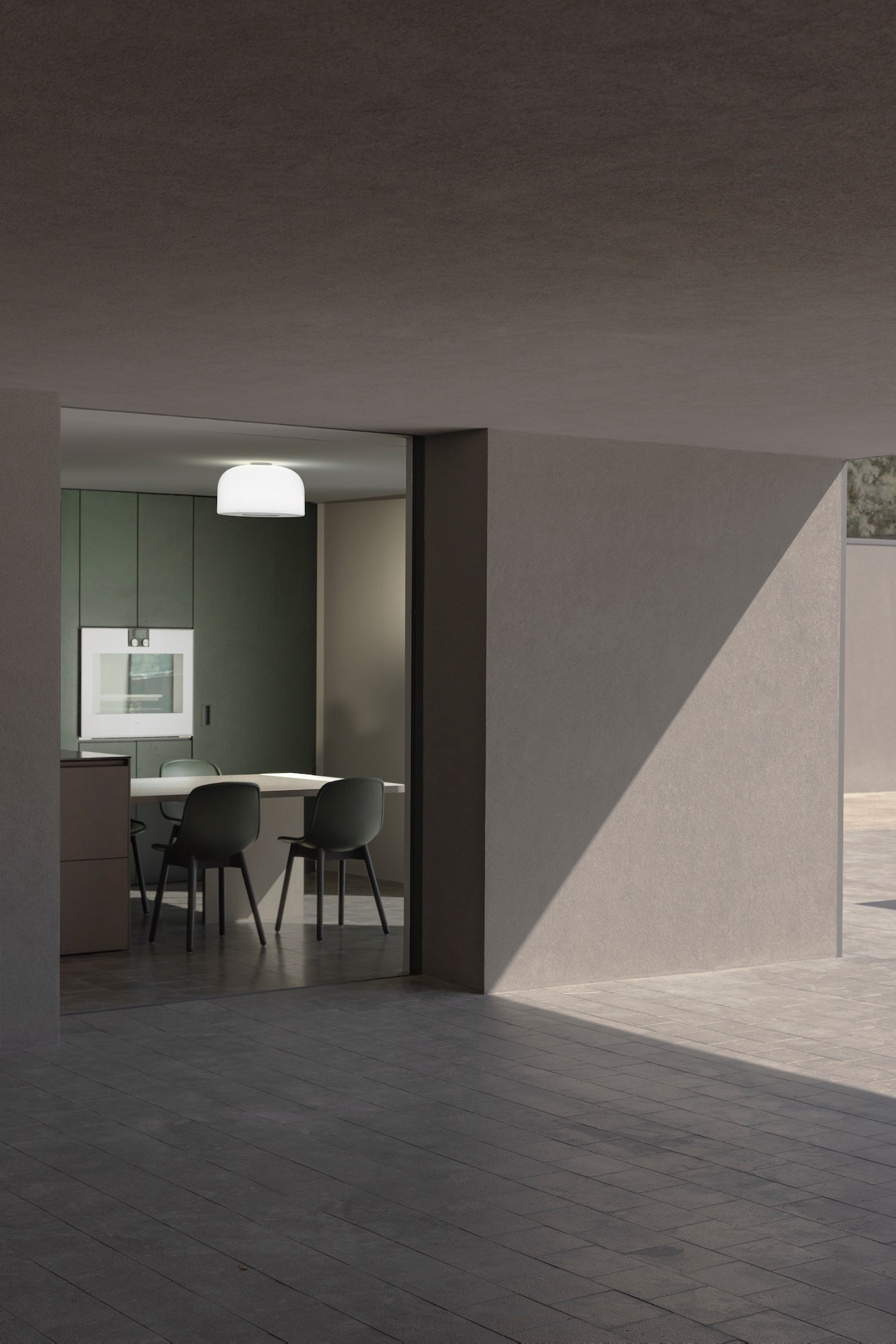 Die untere Öffnung der Lampe, umgeben von einem farbigen Aluminiumring,und wurde so entworfen, dass es das Licht präzise auf die Fläche unter der Lampe lenkt und gleichzeitig die Augen vor Blendung schützt. Dies schafft einen klaren Lichtkegel, derräumlich definiertfunktionale – über den TischKücheninsel oder Empfangstresen. Die Deckenleuchte Bellhop Glass vereint harmonisch Ästhetik mit Technologie und bietet Licht genau dort, wo es am meisten benötigt wird.