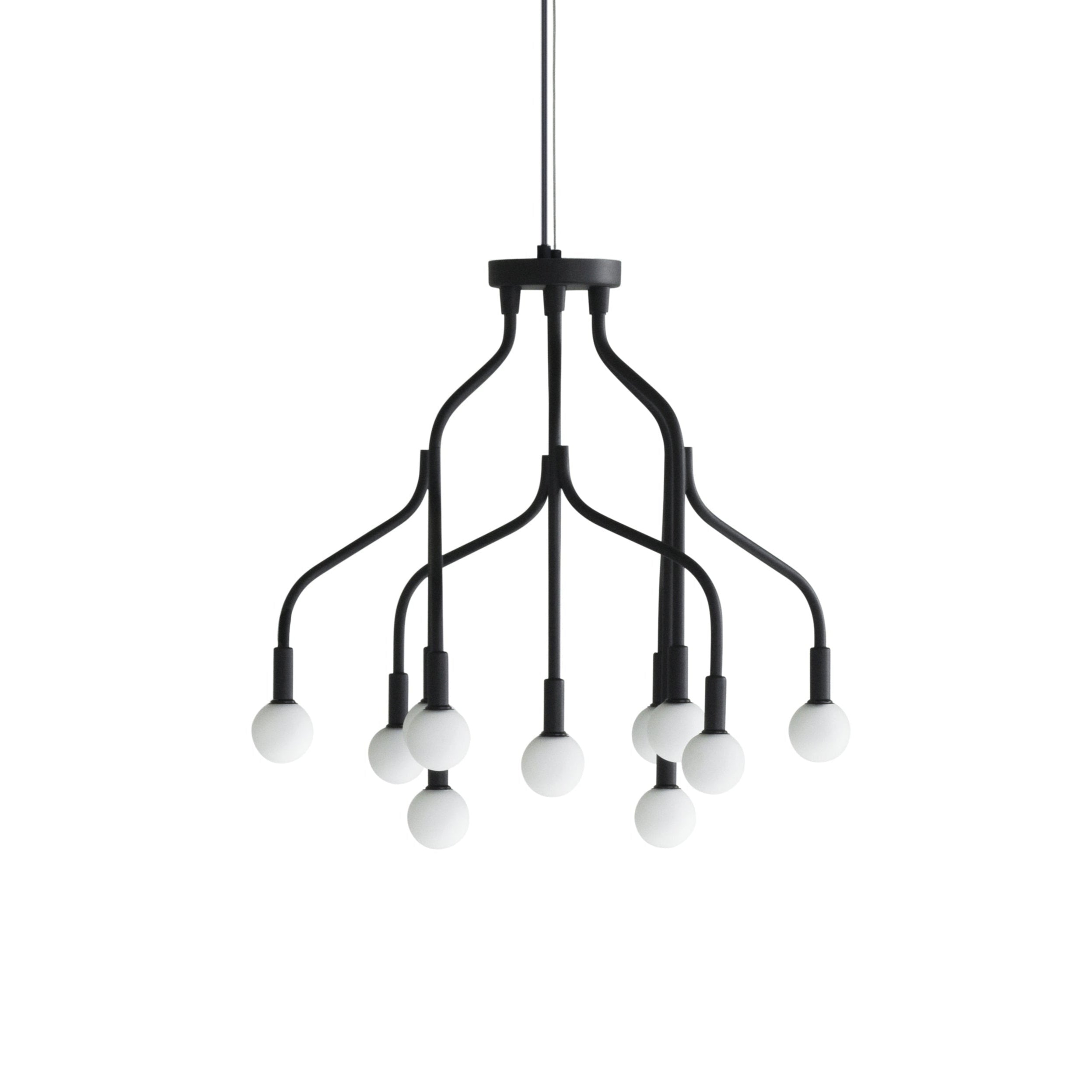 Die Pendelleuchte Vekst ist ein außergewöhnliches Beispiel modernen Designs, inspiriert von der Natur. Ihre skulpturale Form erinnert an die verzweigte Krone eines Baumes – schlanke Arme breiten sich wie Äste aus, und an ihren Enden erscheinen zarte, kugelige Schirme aus opalem Mattglas, die an junge Knospen erinnern. Jedes der Arme ist aus pulverbeschichtetem Stahl gefertigt und endet mit einer LED-Lichtquelle, die einen poetischen Lichteffekt erzeugt.