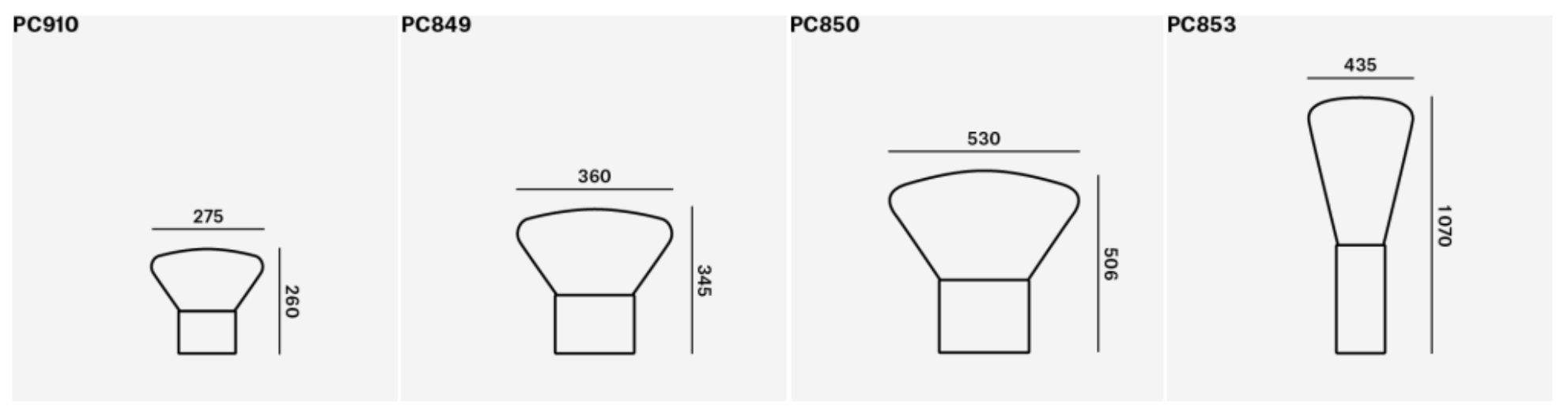 Höhe: 26 / 34.5 / 50,6 / 107 cm