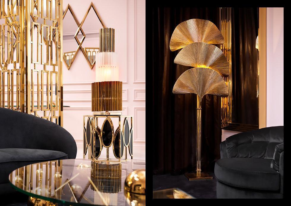 Inspiriert vom Trend der botanischen Dschungel bringt die messingene Lampe Las Palmas eine Atmosphäre eines exotischen Gartens in Ihr Zuhause. Die abgerundeten Formen und kunstvoll ausgeführten Details verleihen der gesamten Komposition Zartheit und Raffinesse. Während sie den Raum beleuchtet, erfüllt die Lampe gleichzeitig eine dekorative Funktion und schafft ein einzigartiges Ambiente in jedem Raum. Bringen Sie mit dieser außergewöhnlichen Bodenlampe Las Palmas eine tropische Aura in Ihr Zuhause, die Sie nicht nur fühlen, sondern auch sehen werden. Es ist nicht nur Beleuchtung, es ist ein Kunstwerk, das den Charakter Ihres Hauses vervollständigt.